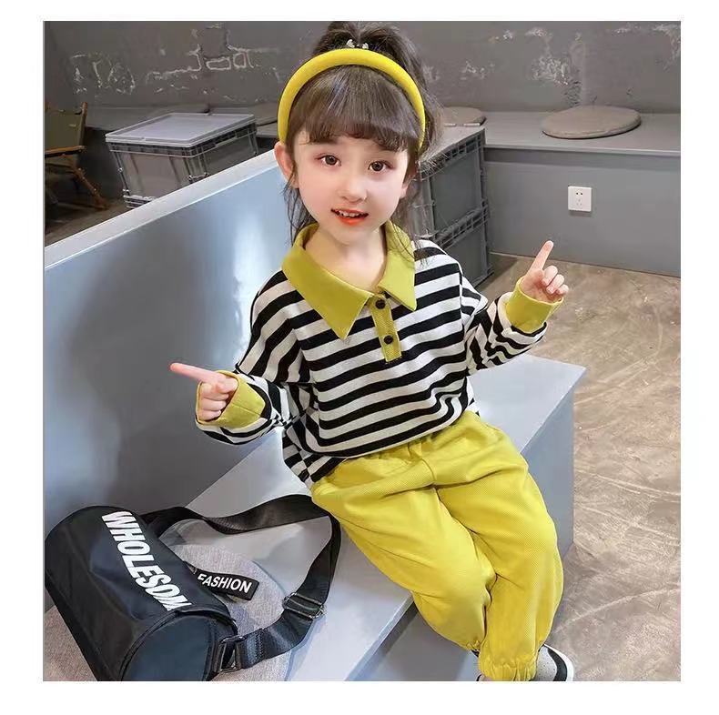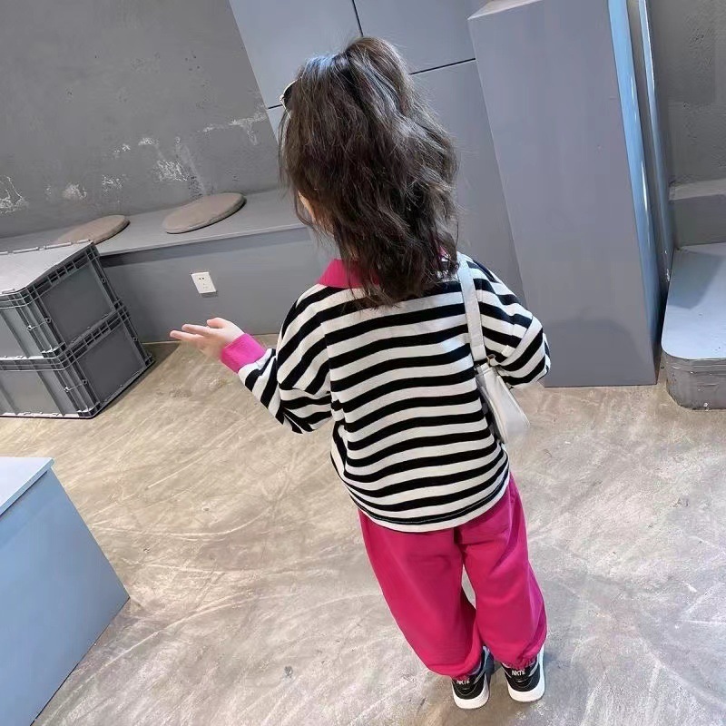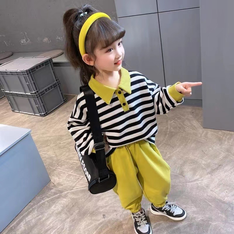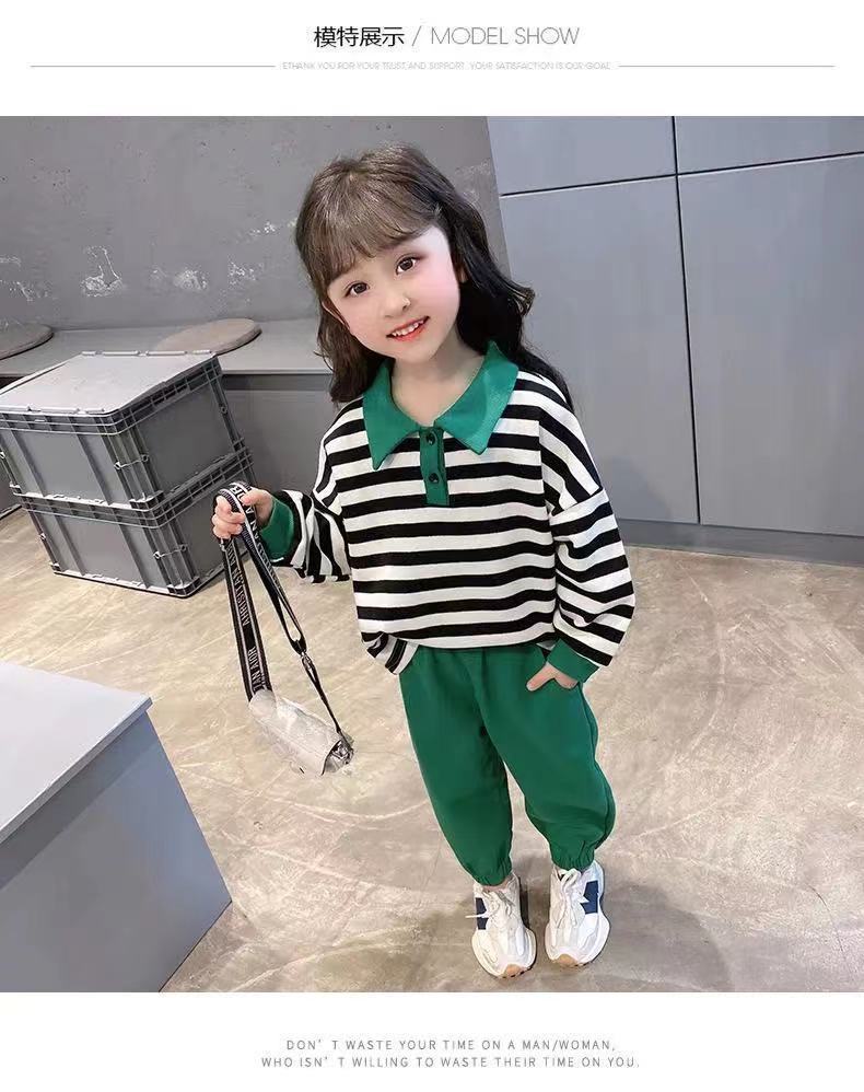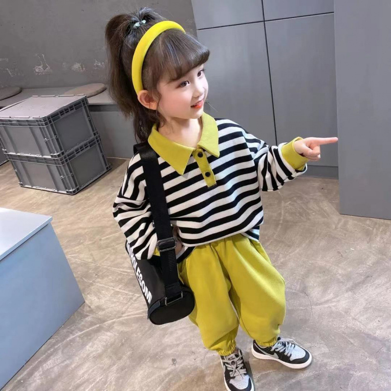 소녀 느슨한 세트 2025 새로운 봄과 가을 서양식 줄무늬 어린이와 아기 소녀의 가을 투피스 세트스토어 가기