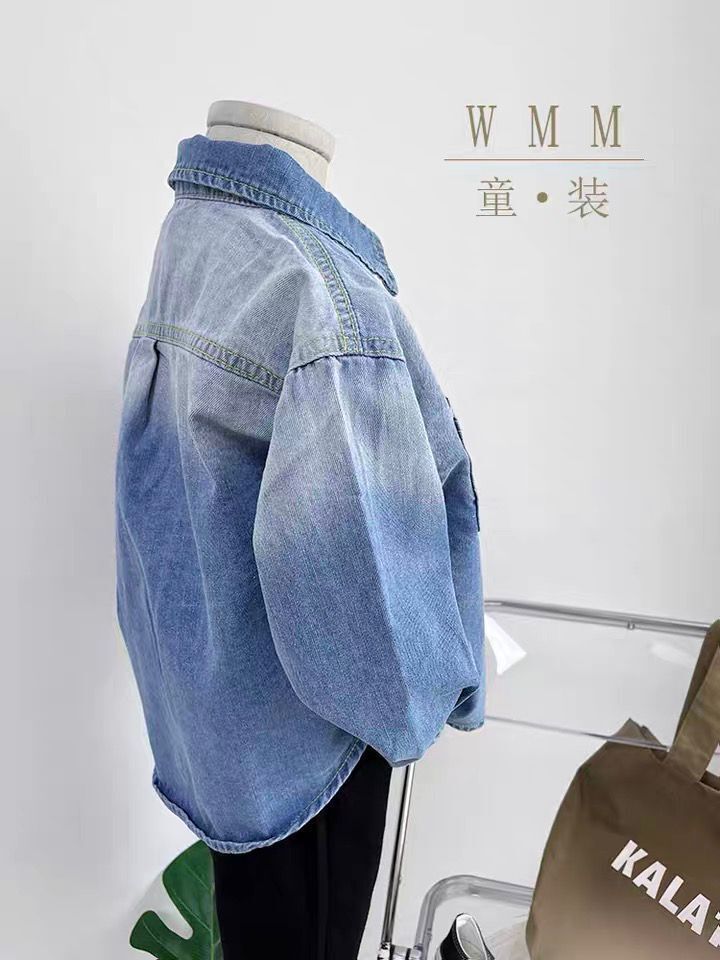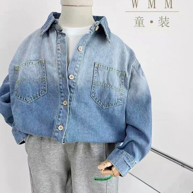 소년 소녀 얇은 데님 셔츠 중소 어린이 아기 옷깃 최고 봄과 여름 2025 새 소년 잘 생긴 셔츠스토어 가기