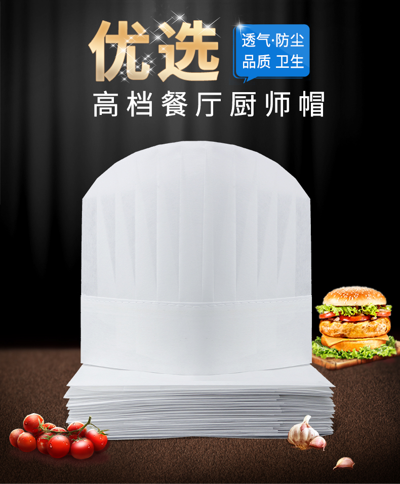 일회용 요리사 모자 남자 주방 케이터링 작업 모자 여성의 두꺼운 부직포 통기성 높은 모자 종이 모자 모자스토어 가기