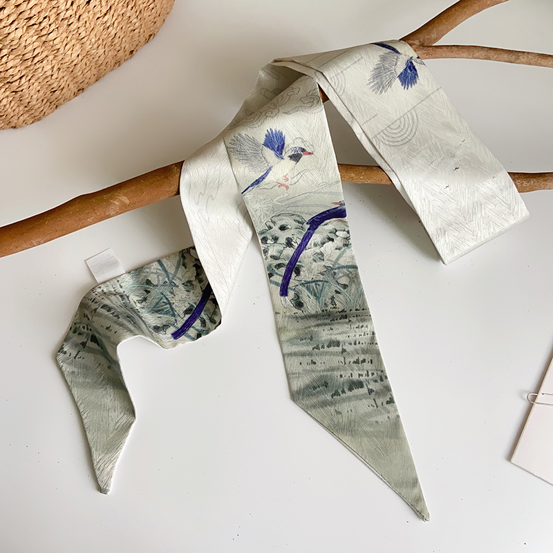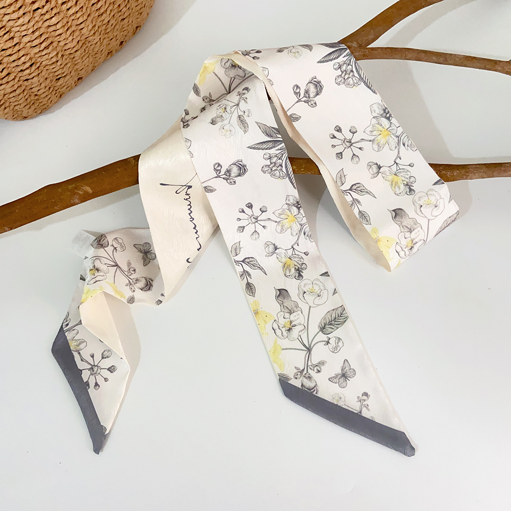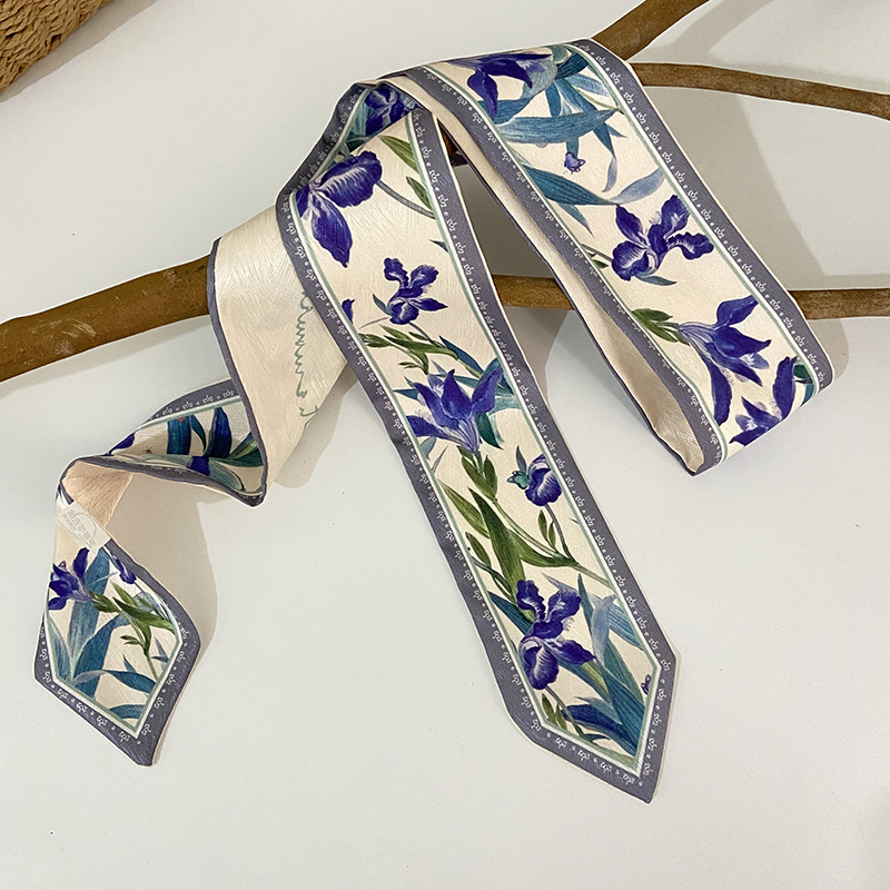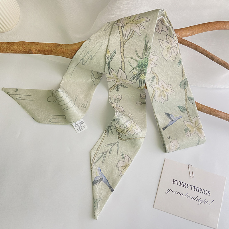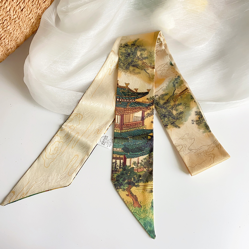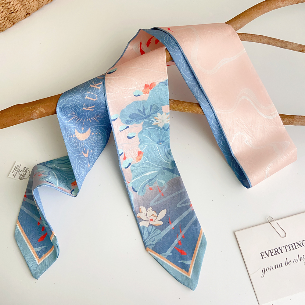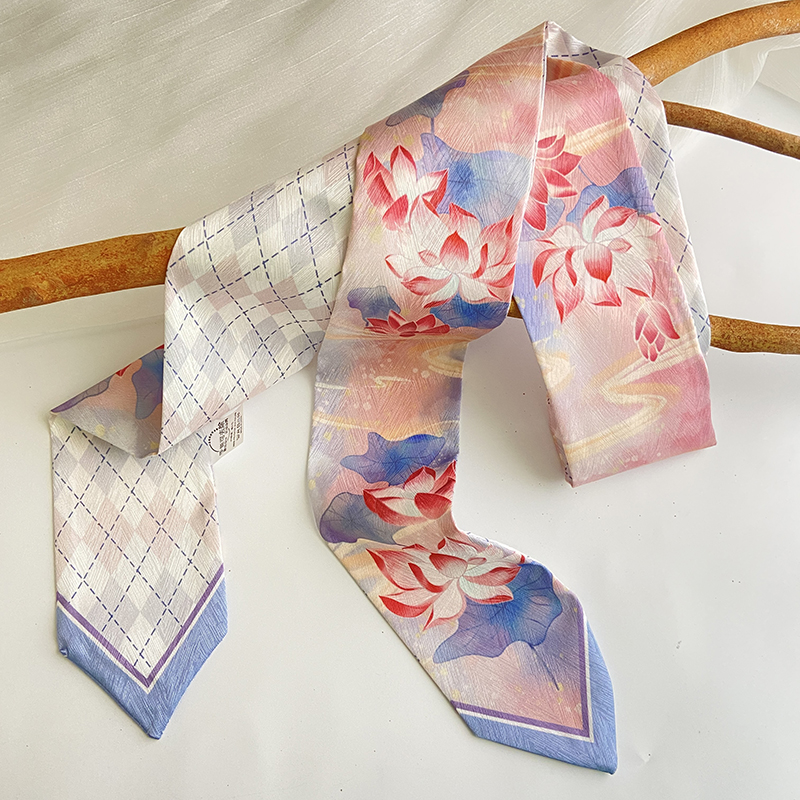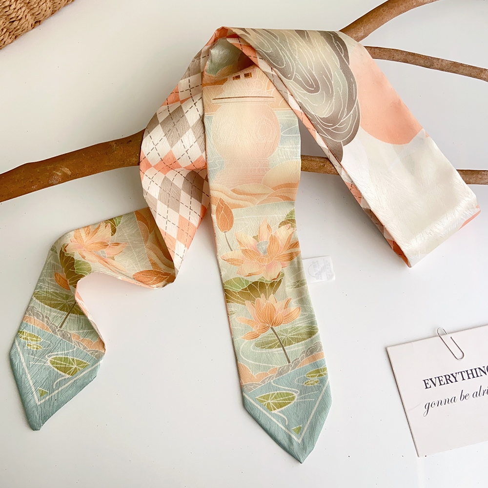 Shanhe Lotus 중국 스타일 긴 실크 스카프 헤어 밴드 여성용 골동품 넥타이 헤어 가방 리본 얇은 좁은 리본 장식 스카프