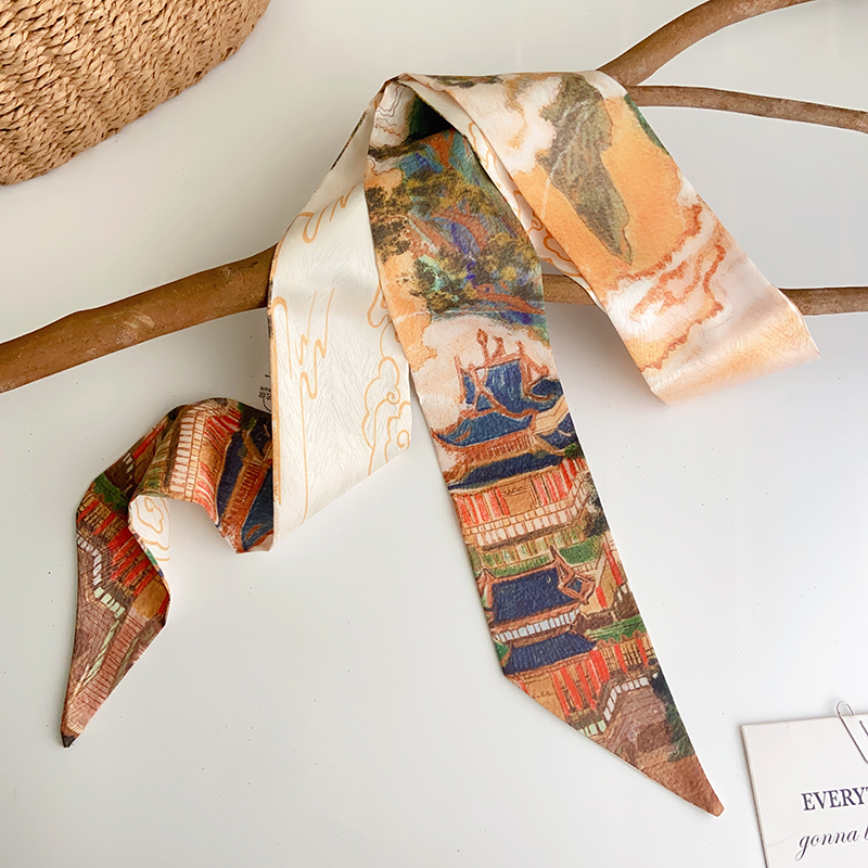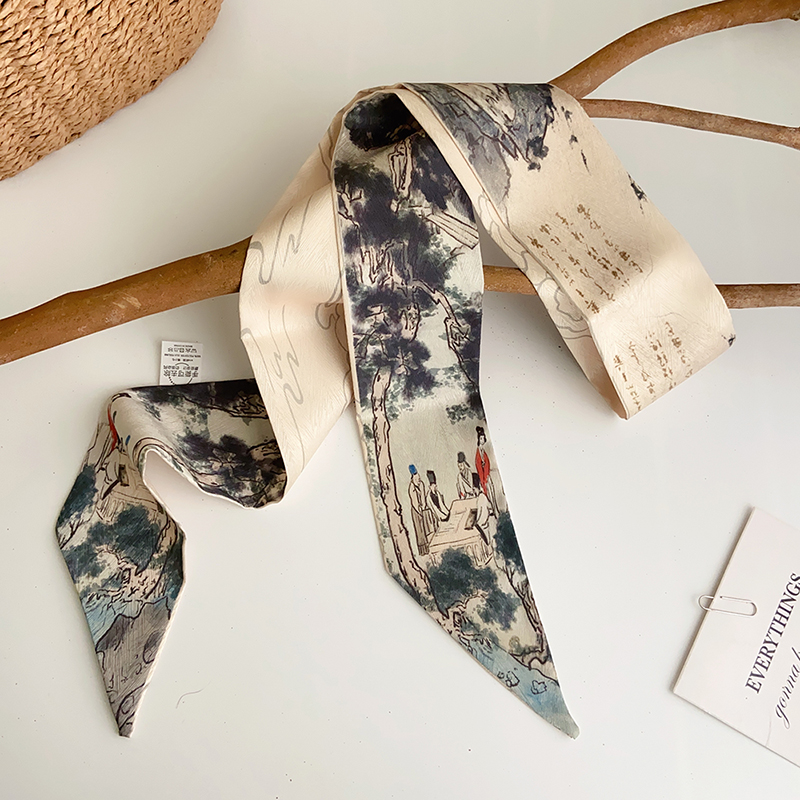 Shanhe Lotus 중국 스타일 긴 실크 스카프 헤어 밴드 여성용 골동품 넥타이 헤어 가방 리본 얇은 좁은 리본 장식 스카프스토어 가기