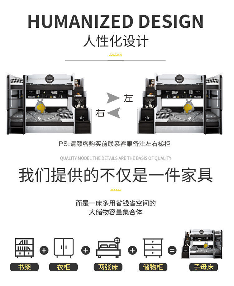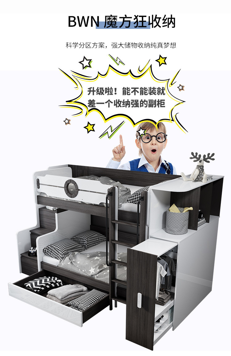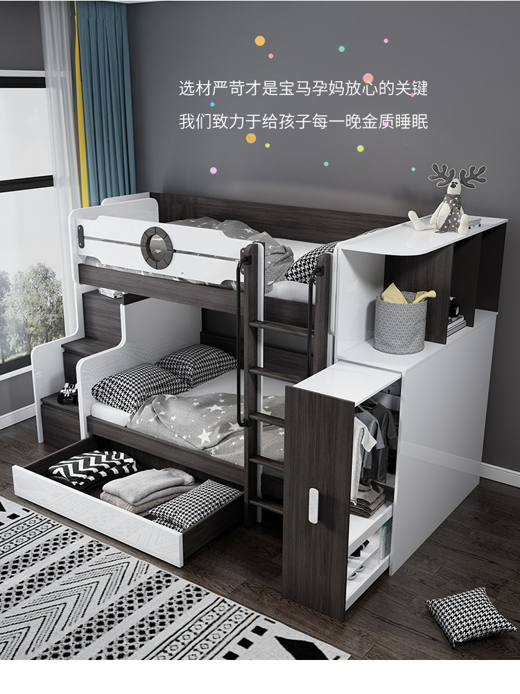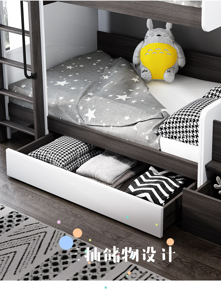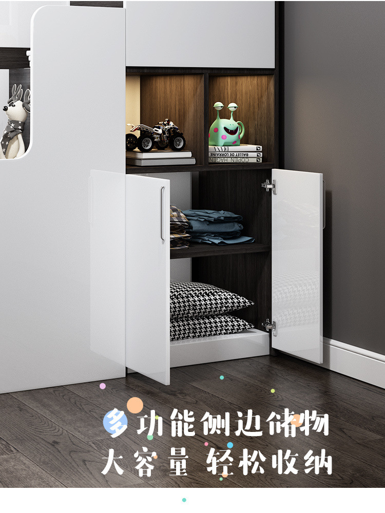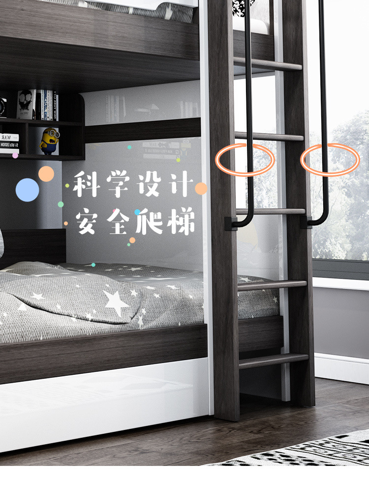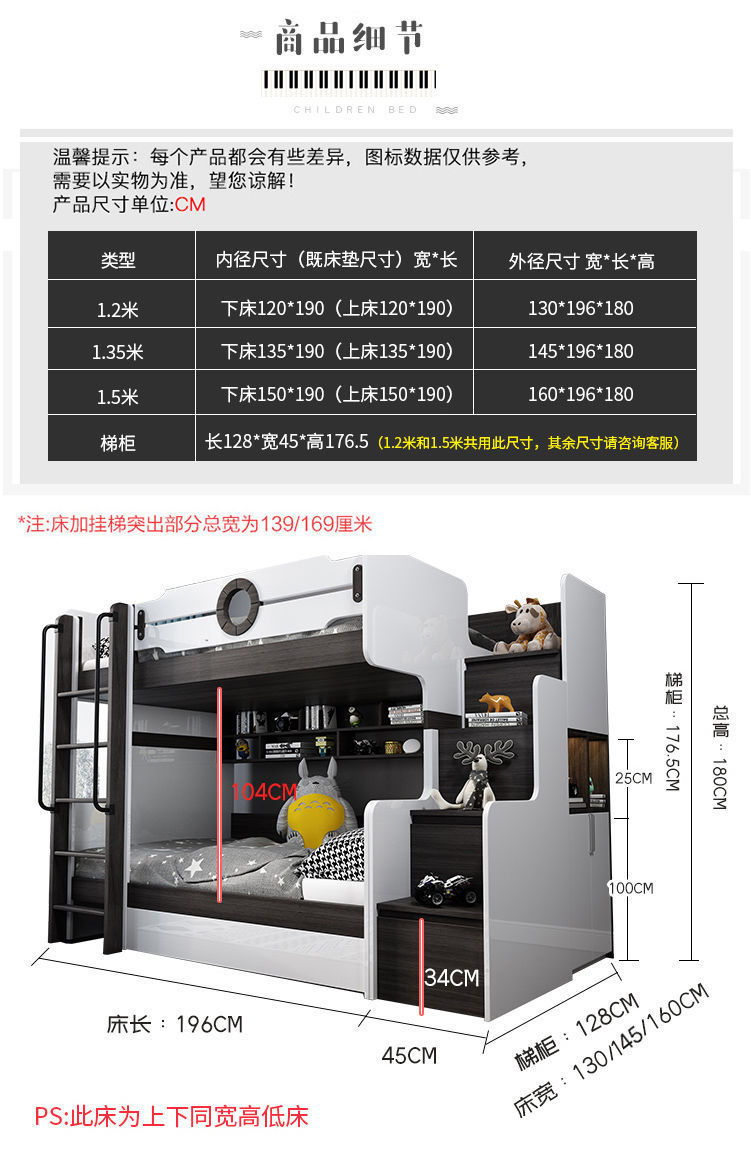 • 상부 및 하부 침대 + 사다리 캐비닛(일치하는 매트리스 포함)
