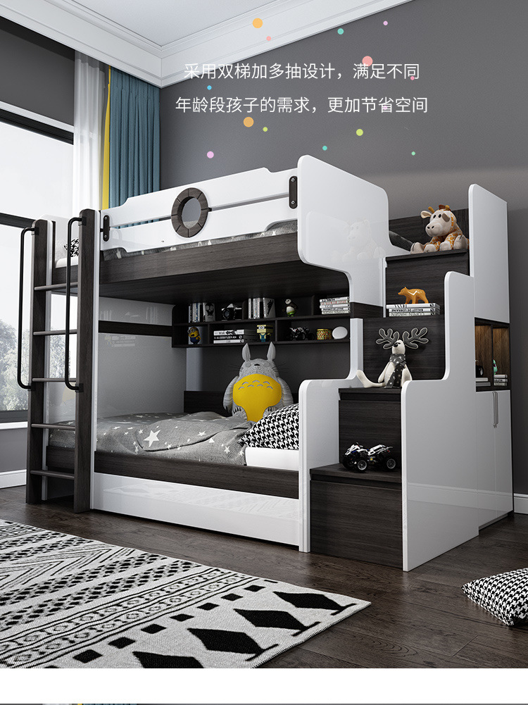 같은 폭 이층 침대 다기능 계단 등반 사다리 어머니와 아이 침대 소녀 공주 침대 더블