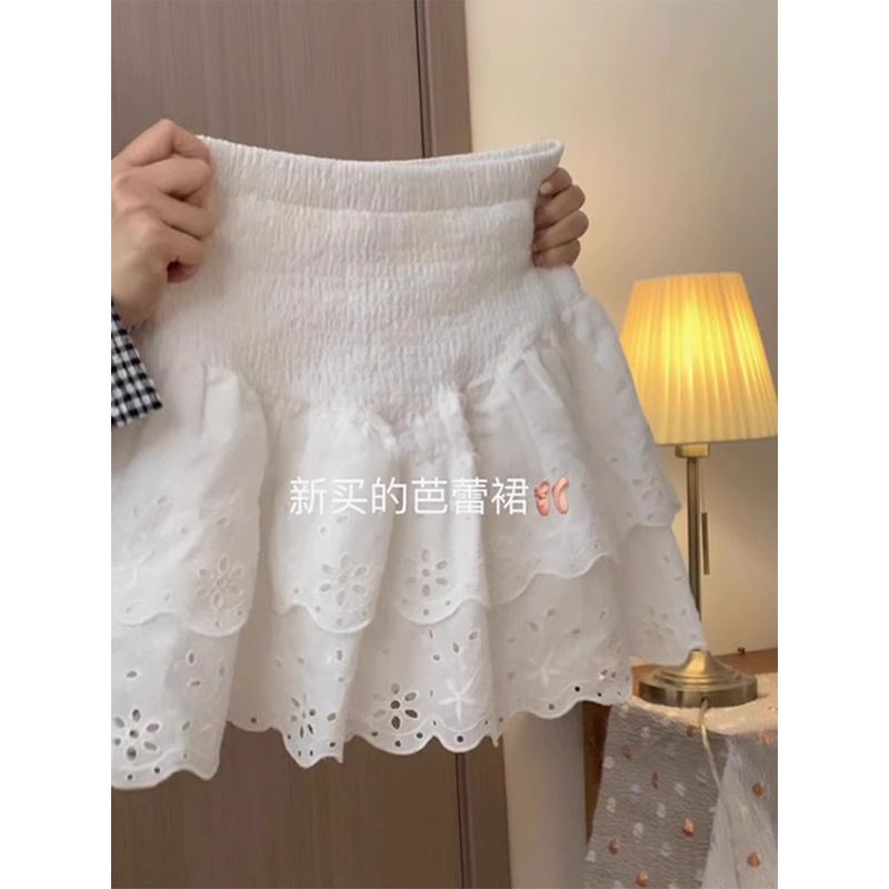 화이트 레이스 크로 셰 A 라인 케이크 스커트 여성의 봄과 여름 투투 스커트 짧은 치마 발레 스타일 스커트 작은 치마스토어 가기