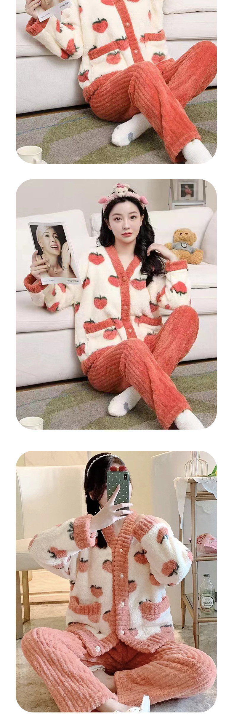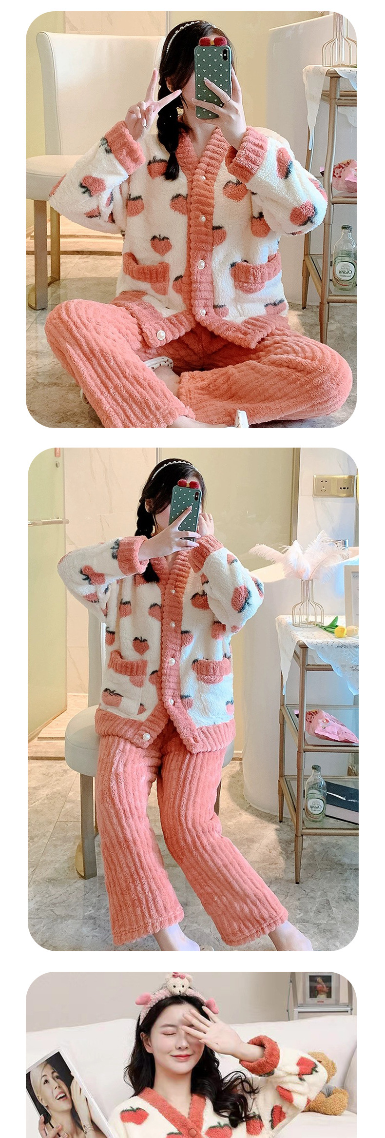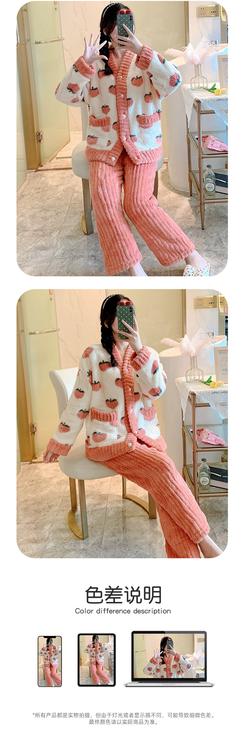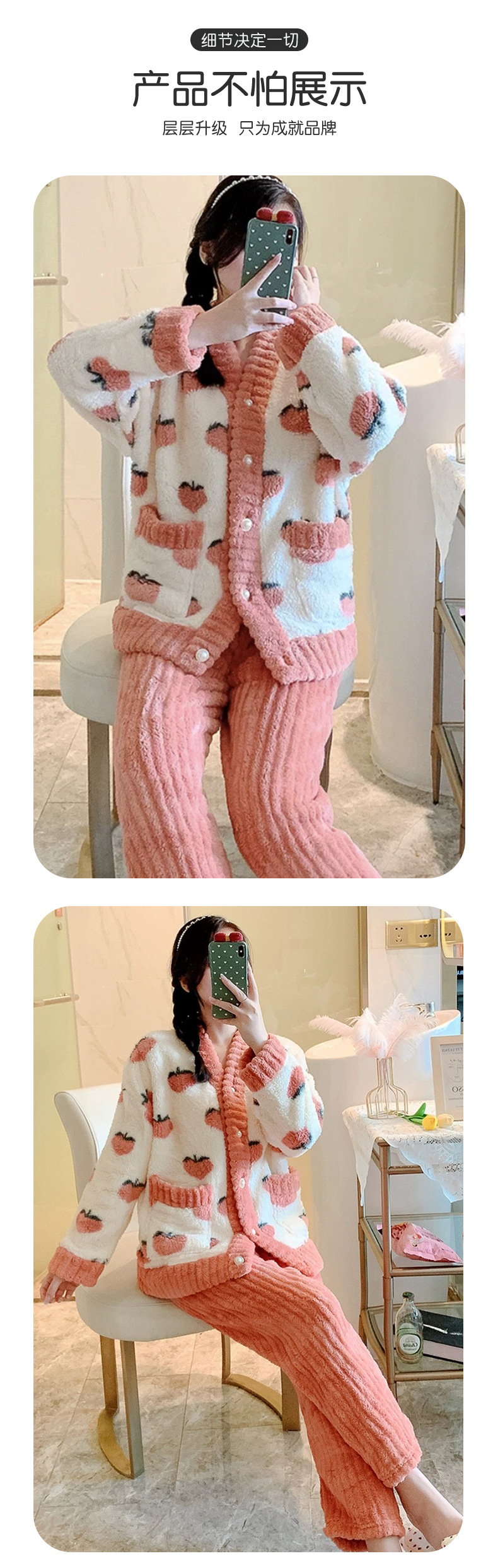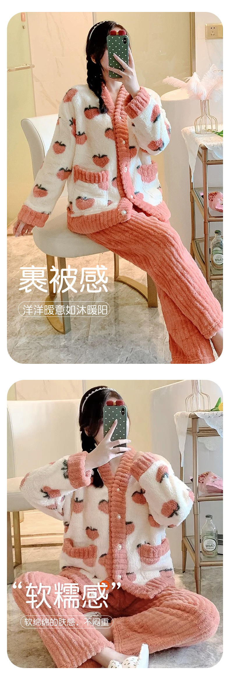 산호 벨벳 파자마 여성 샤넬 스타일 가을과 겨울 기모 두꺼운 플란넬 복숭아 홈 옷 투피스 세트