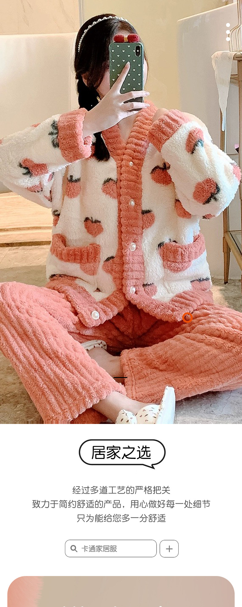 산호 벨벳 파자마 여성 샤넬 스타일 가을과 겨울 기모 두꺼운 플란넬 복숭아 홈 옷 투피스 세트스토어 가기