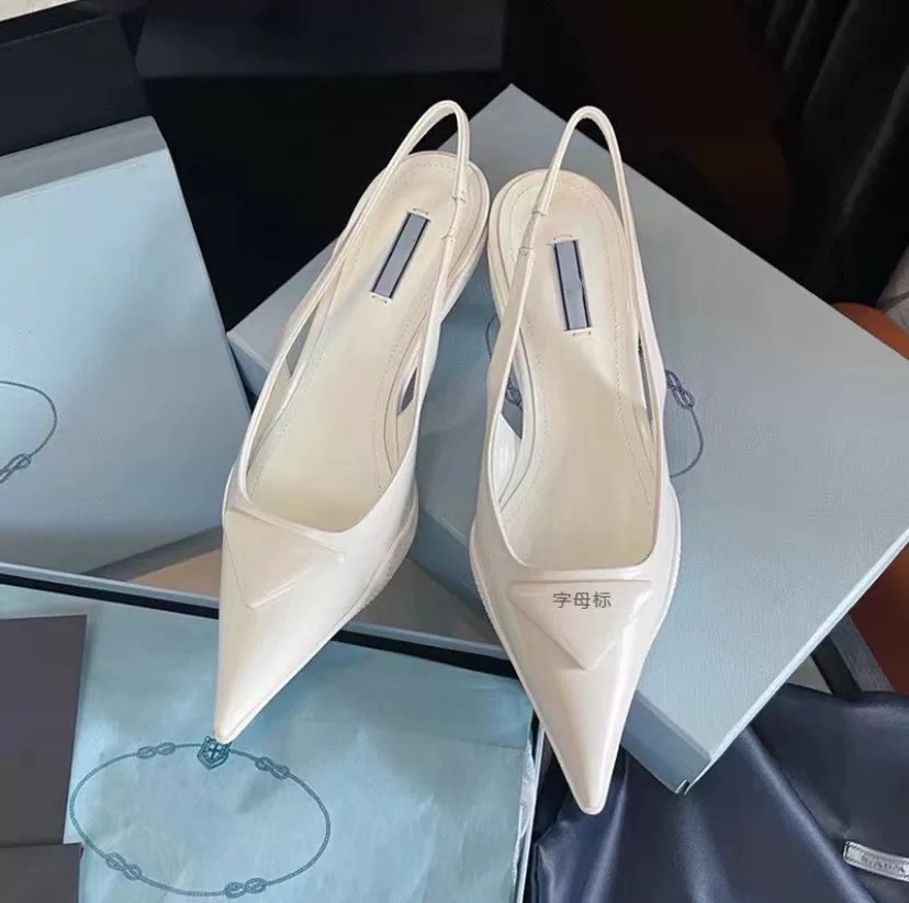 여름 2025 P 홈 트라이앵글 표준 인터넷, 뾰족한 고양이 힐 샌들 여성 바오터우 얕은 입 정품 가죽 리어 트립 하이힐 기념