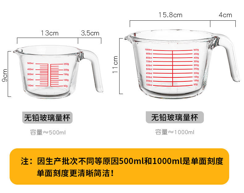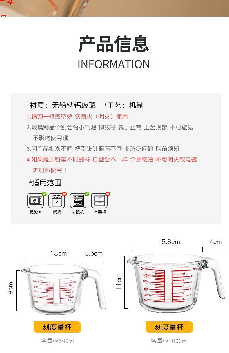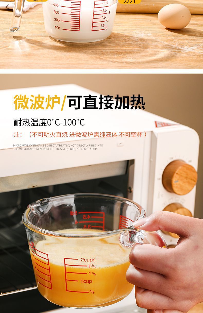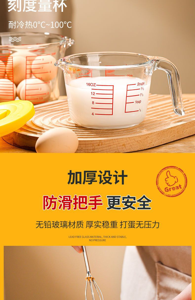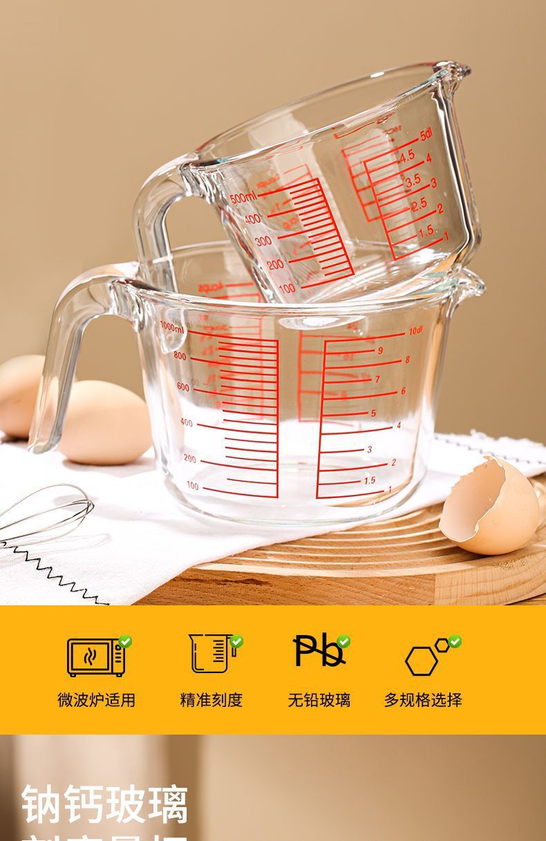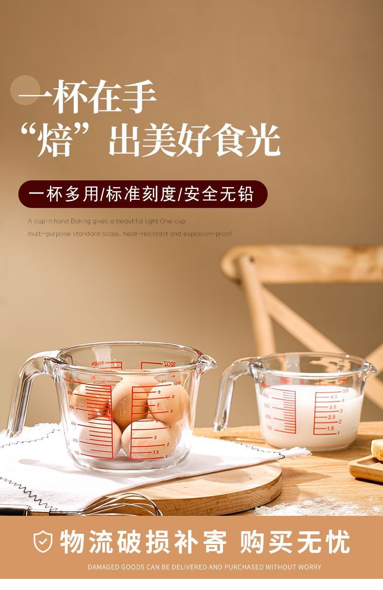 스케일 유리로 측정 컵 가정용 고온 저항하는 대용량 계란 컵 밀가루 측정기 컵 베이킹 조각 Enshun