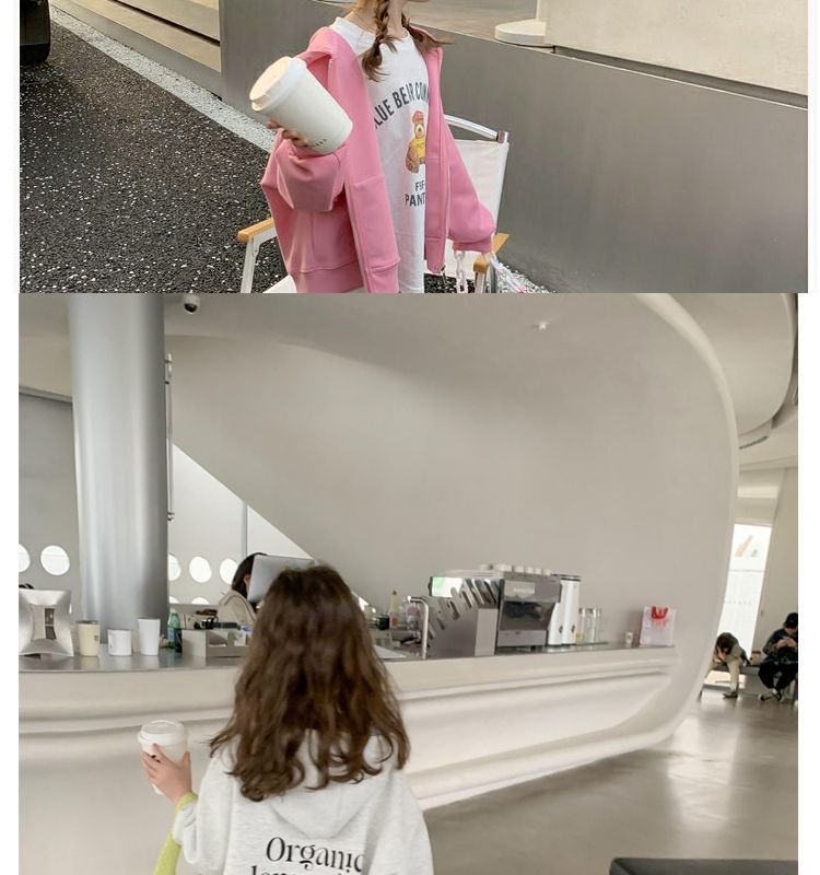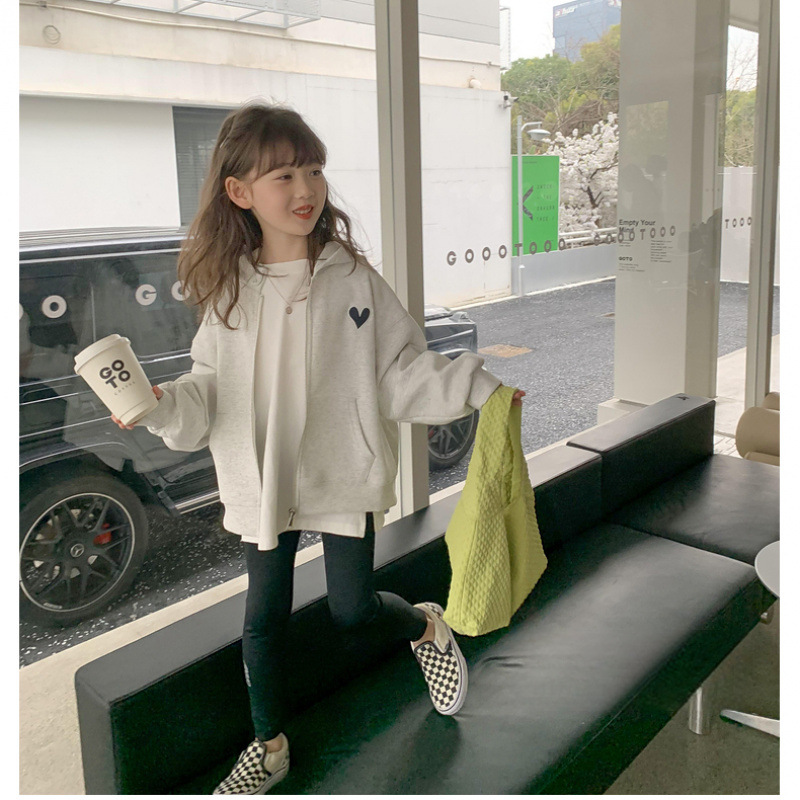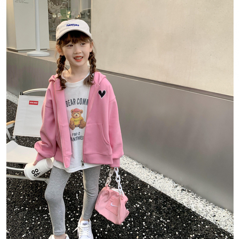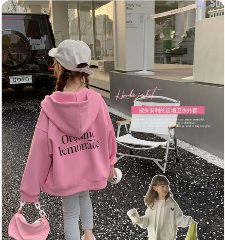 소녀 스웨트 코트 2025 봄과 가을 큰 어린이 서양식 인터넷 인기 소녀 스포츠 후드 탑을위한 새로운 가을 옷스토어 가기