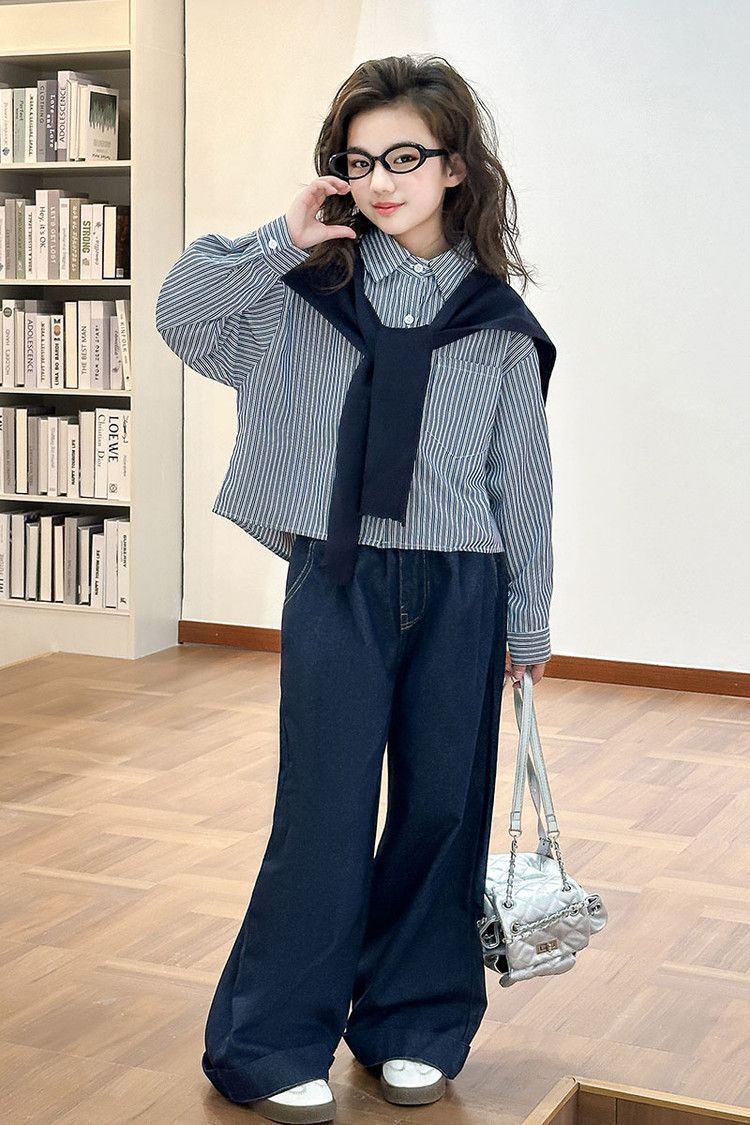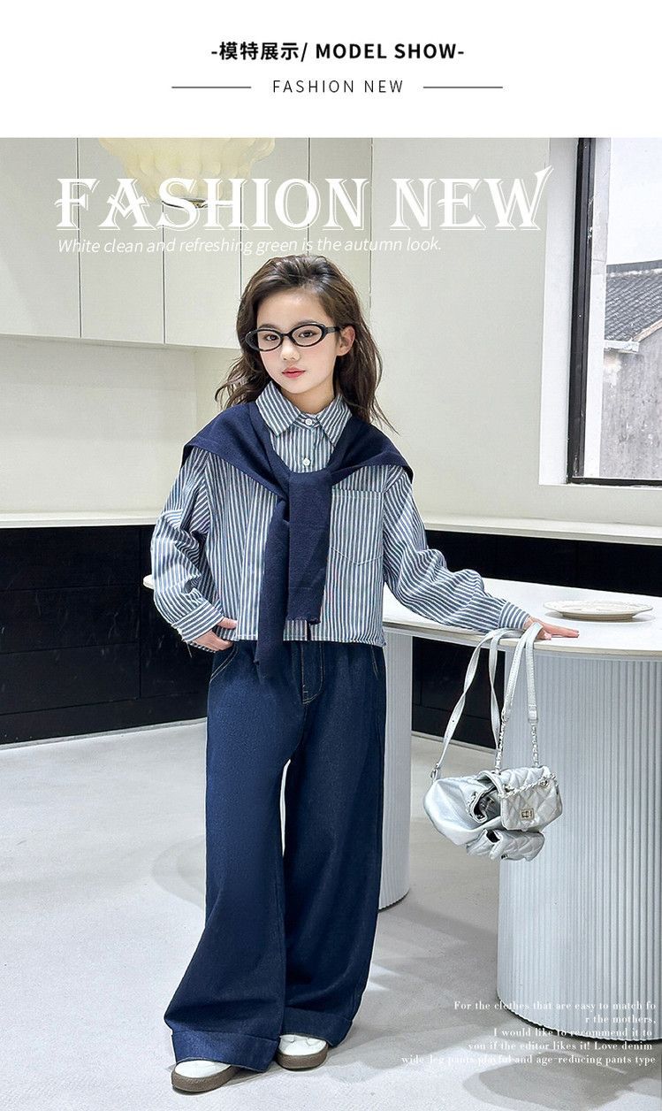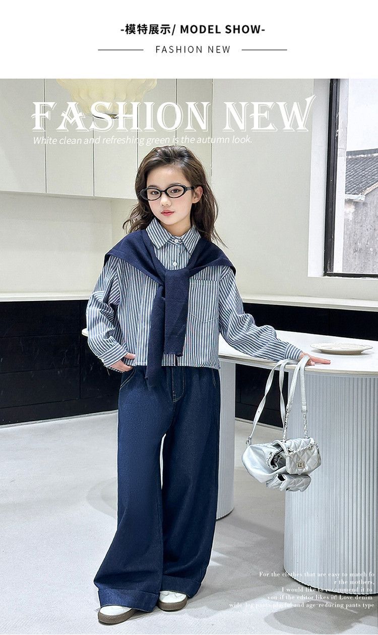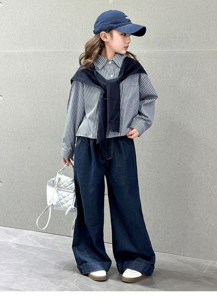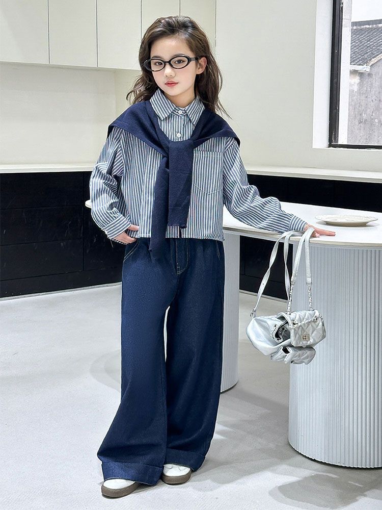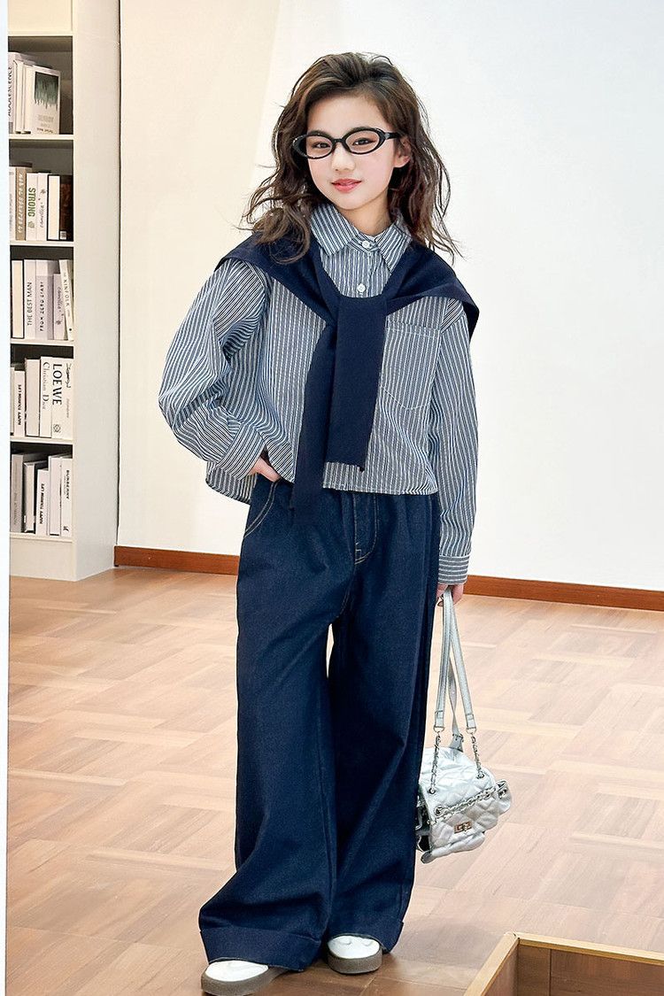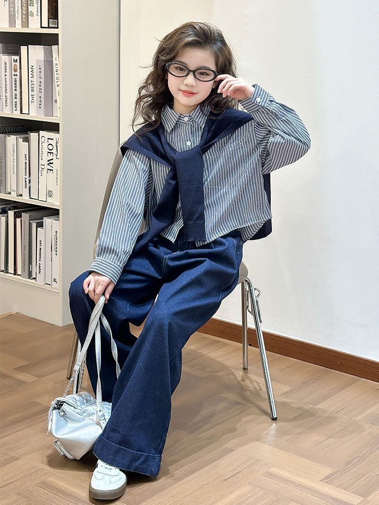 소녀 세트 가을 2025 새로운 큰 어린이 서양식 목도리 셔츠 어린이 넓은 다리 청바지 조수스토어 가기