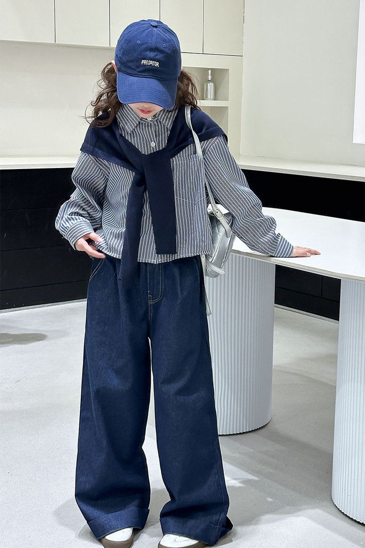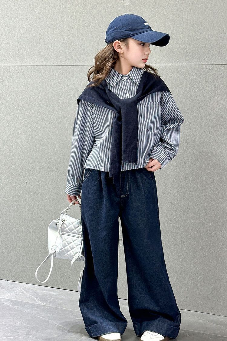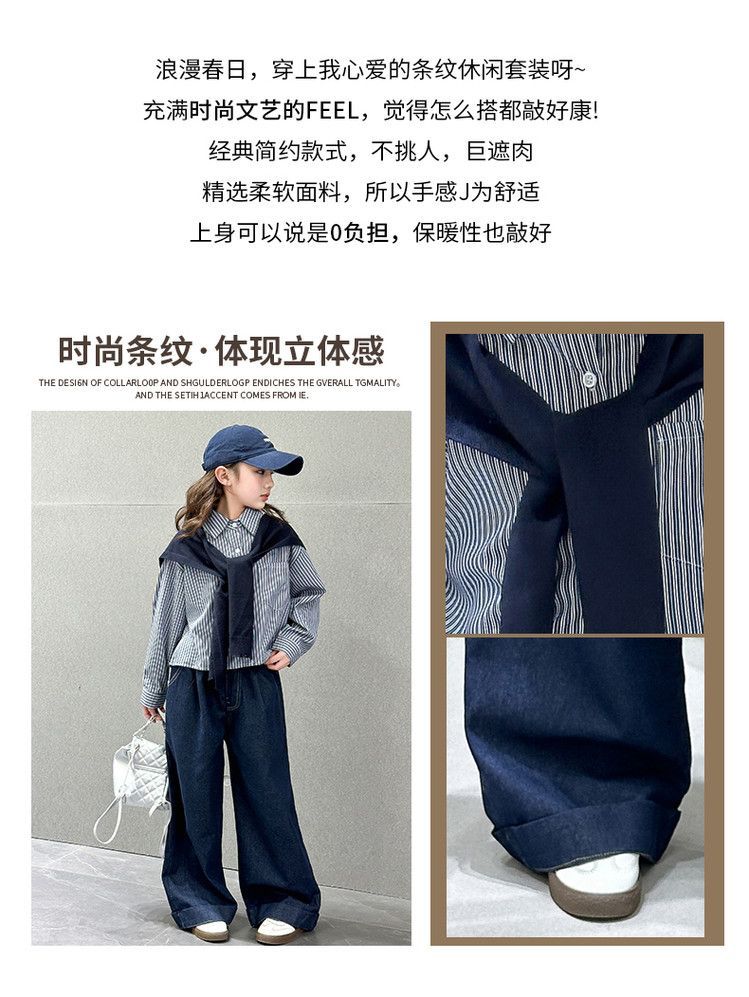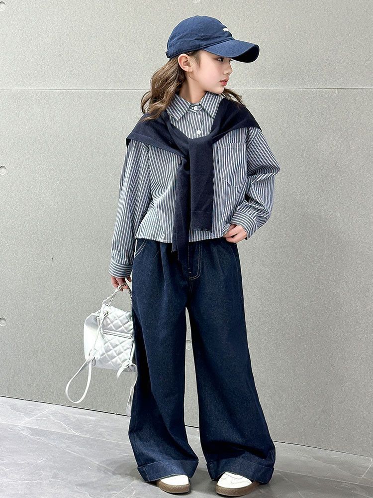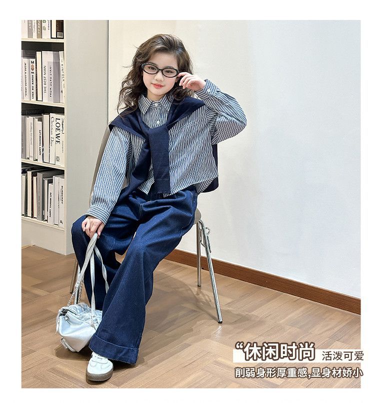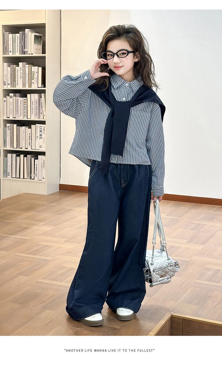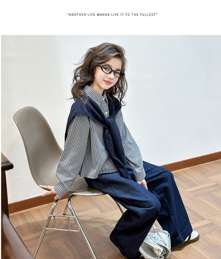 소녀 세트 가을 2025 새로운 큰 어린이 서양식 목도리 셔츠 어린이 넓은 다리 청바지 조수스토어 가기