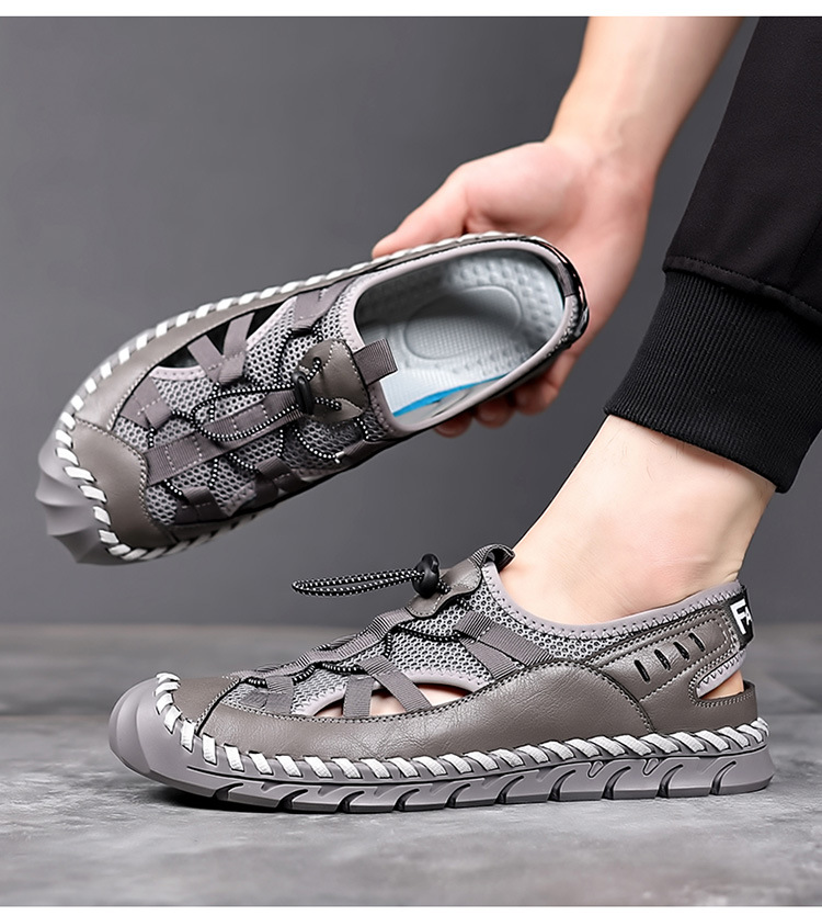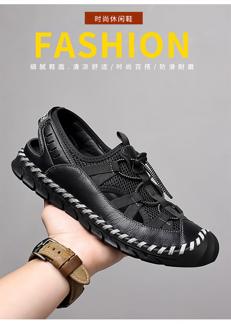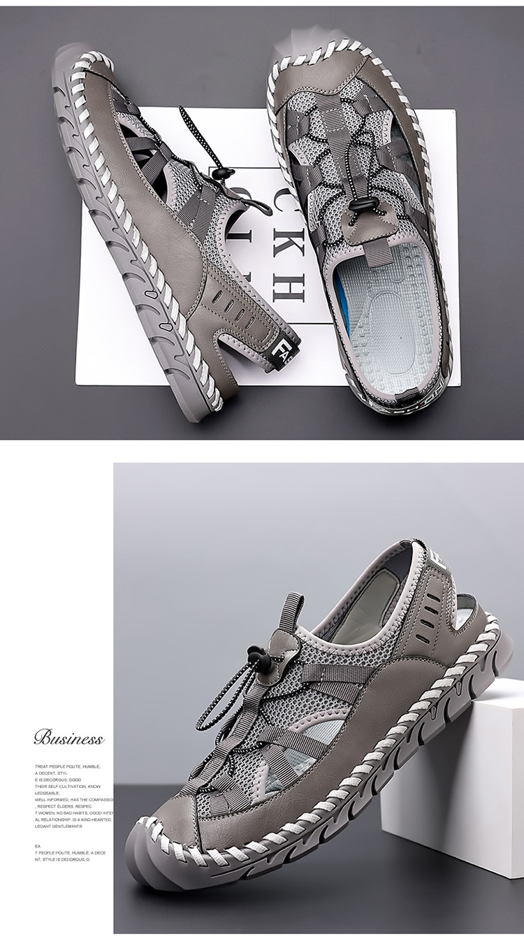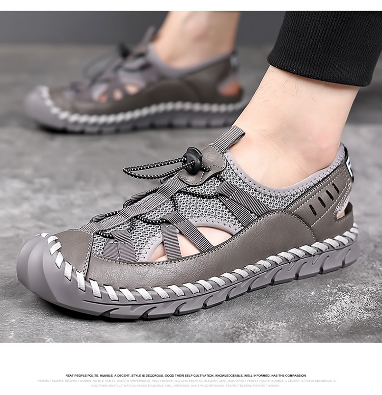 2025 새로운 속이 빈 샌들 통기성 비치 신발 남성 캐주얼 남성 신발 매일 메쉬 편안한 남성 신발 도매스토어 가기