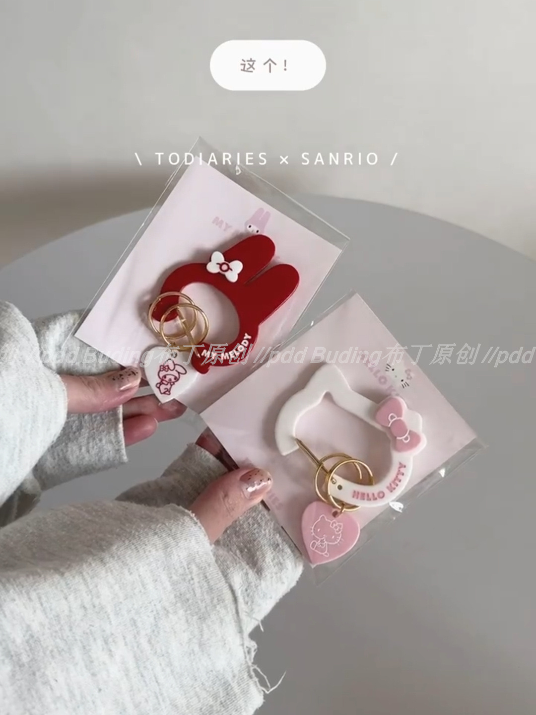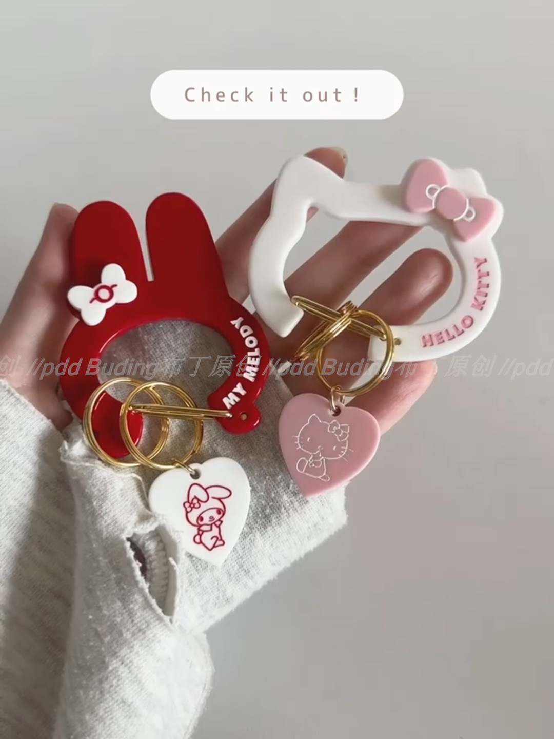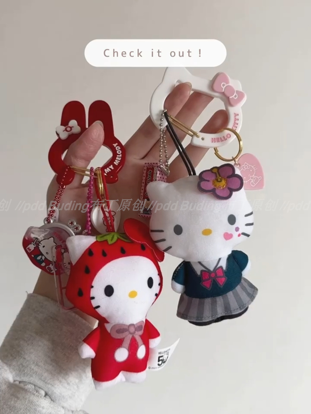 새로운 일본 산리오 시리즈 귀여운 키티 헬로 키티 해피 카라비너 백 펜던트 키 체인스토어 가기