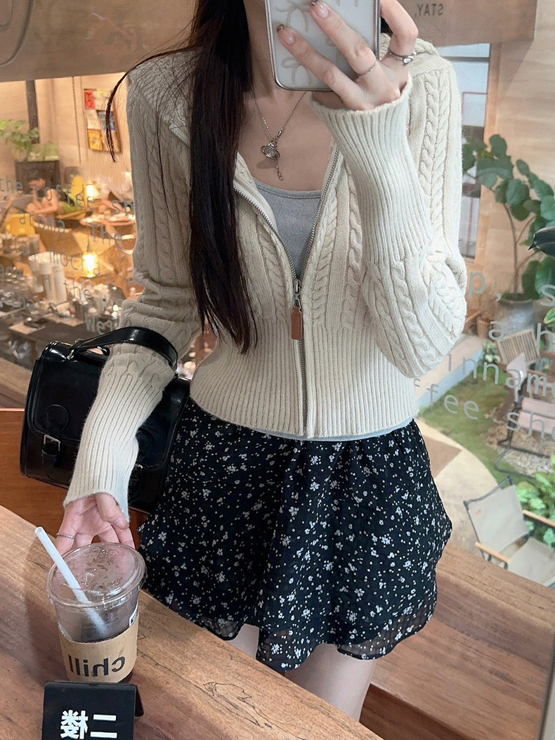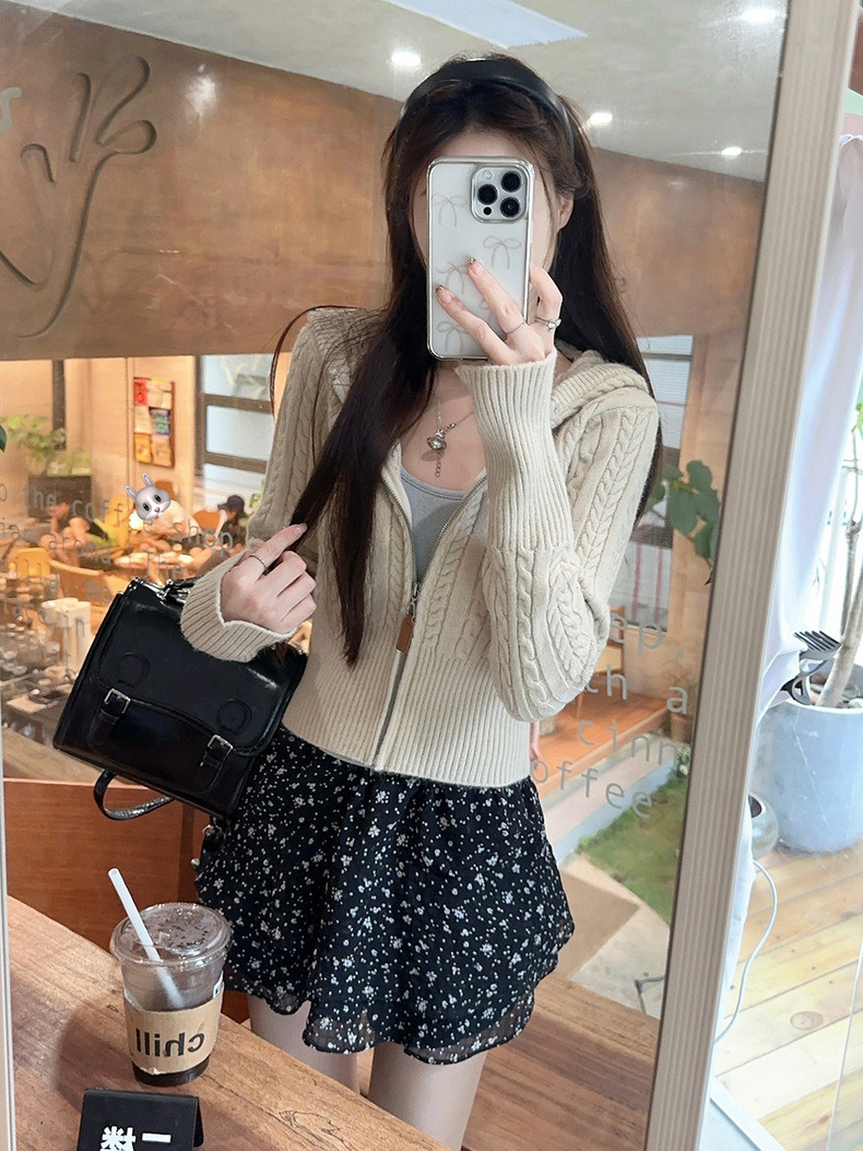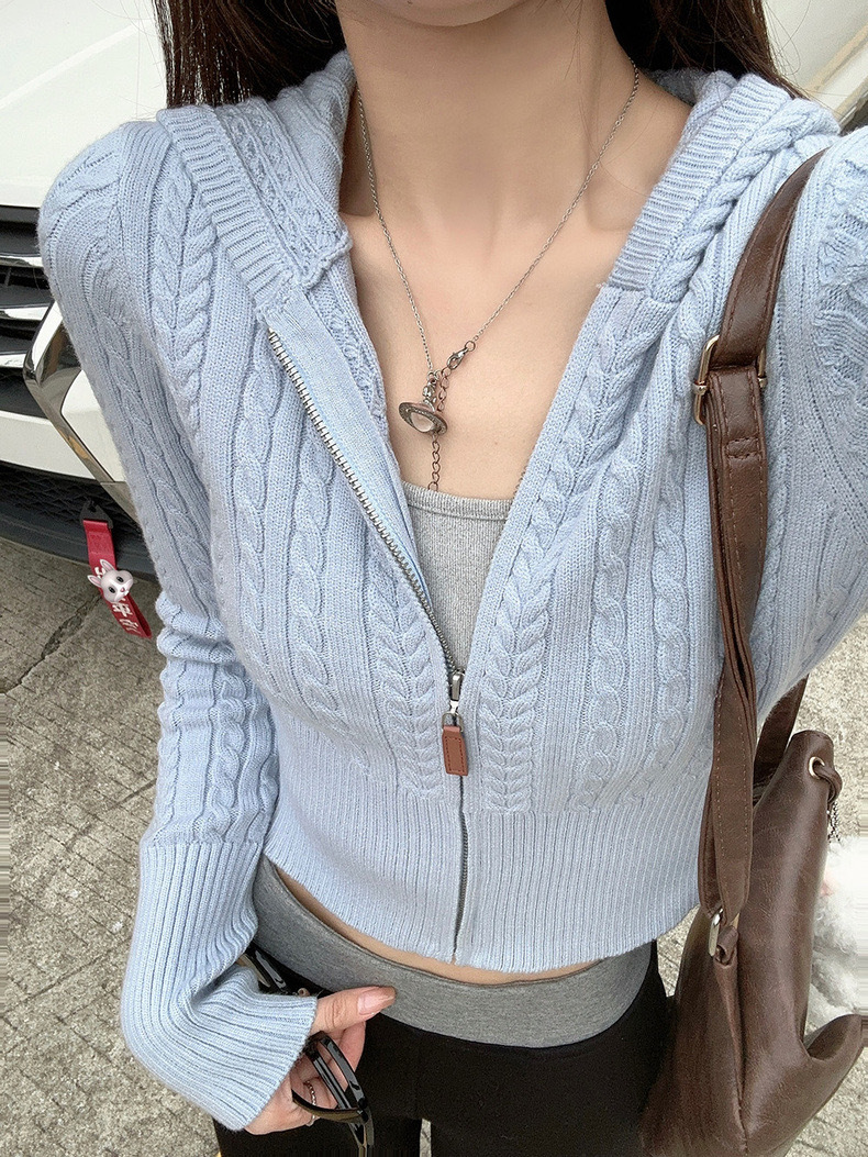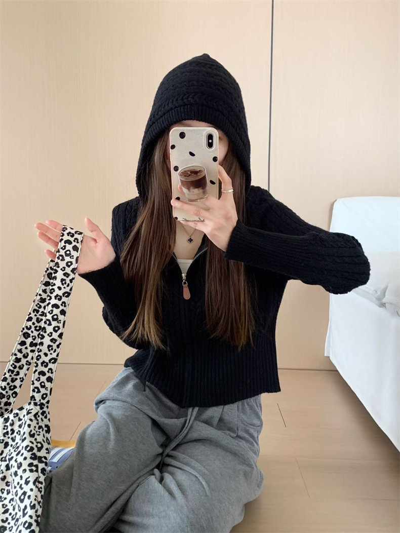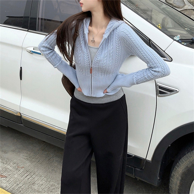 부드러운 바람 트위스트 후드 니트 카디건 여성 2025 년 봄 새로운 슬림핏 슬리밍 쇼트 스웨터 코트 탑스토어 가기