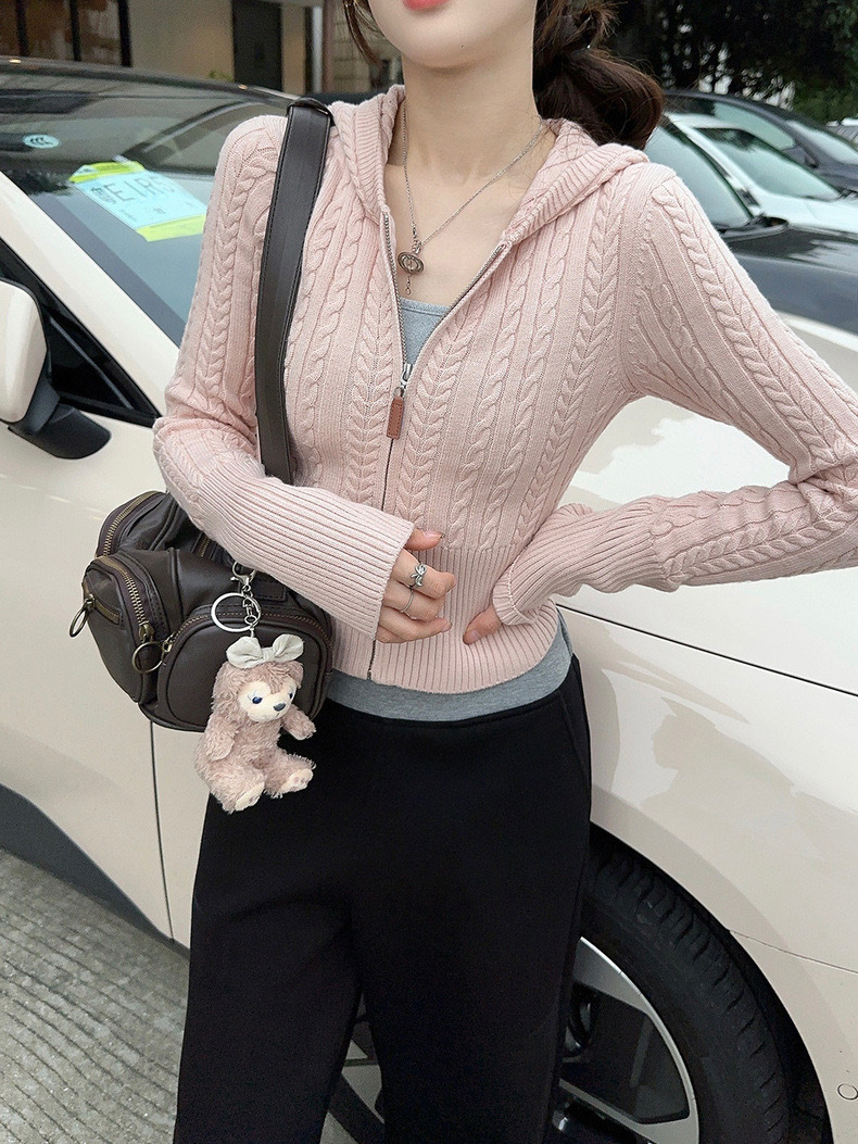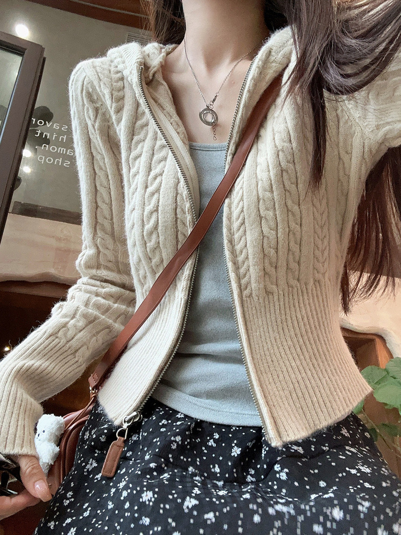 부드러운 바람 트위스트 후드 니트 카디건 여성 2025 년 봄 새로운 슬림핏 슬리밍 쇼트 스웨터 코트 탑