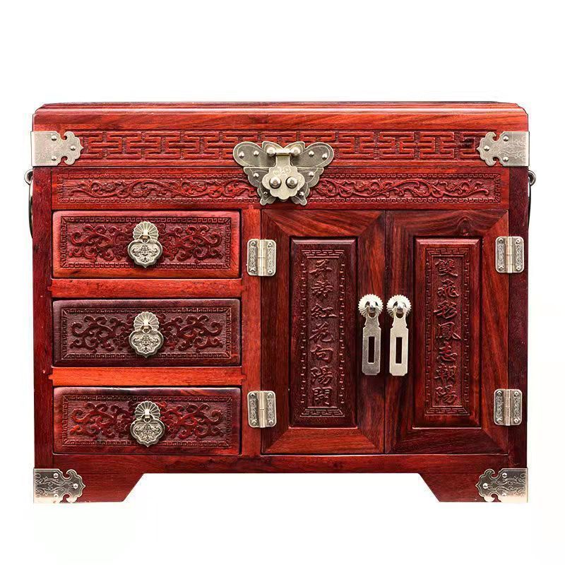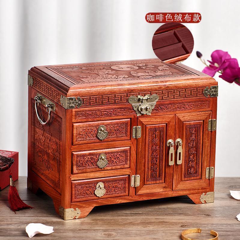 로즈 우드 쥬얼리 박스 다층 보석 보관 상자 레드 우드 솔리드 우드 센 테니얼 웨딩 화장품 거울 상자