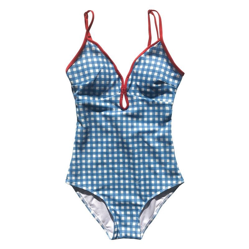 섹시한 파란색 격자 무늬 격자 무늬 수영복 삼각형 여성의 배꼽 뒤덮인 슬리밍 학생 가리 바캉스 뜨거운 봄 수영복스토어 가기