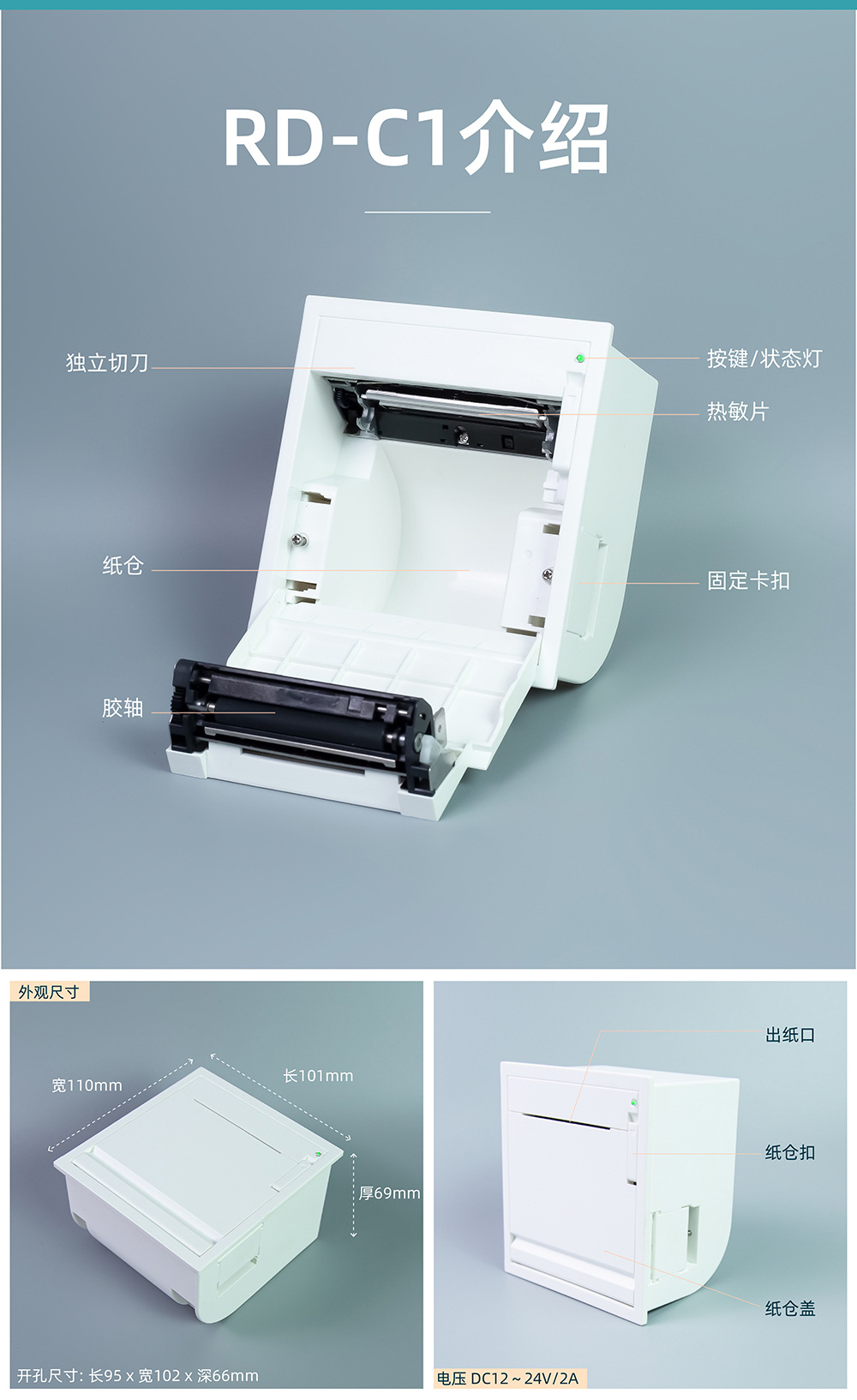 Queyin C1 내장 열 프린터 종이 절단 단일 칩 마이크로 컴퓨터 직렬 포트 의료 장비 셀프 서비스 기계 저장 캐비닛