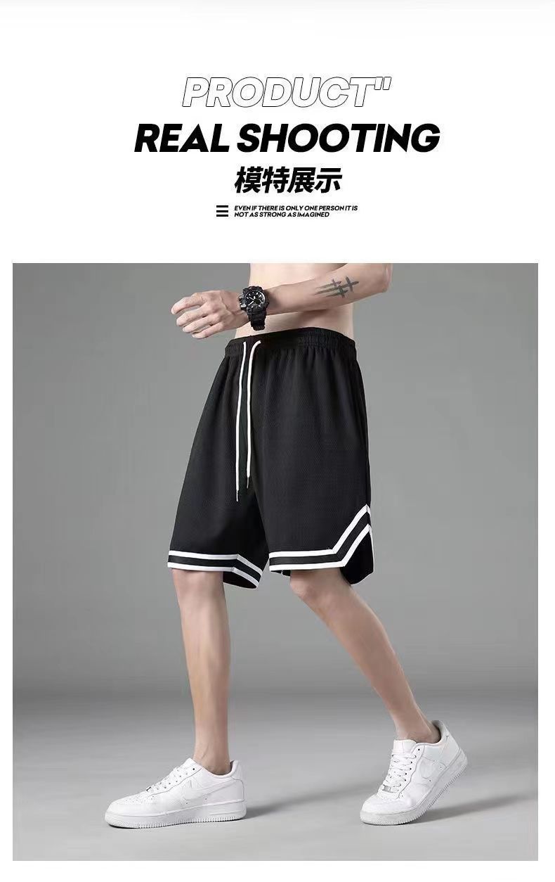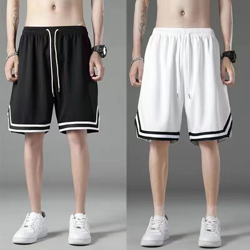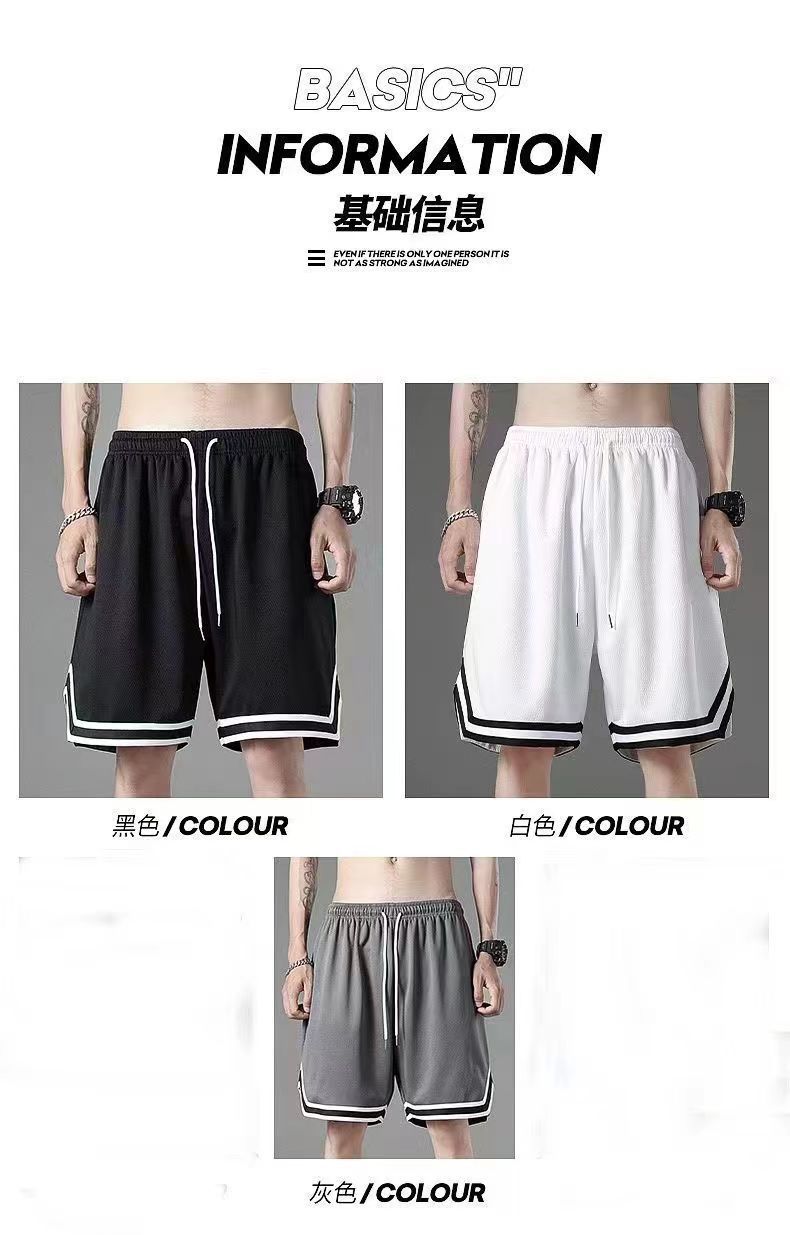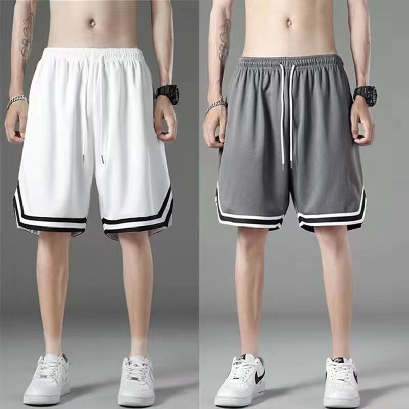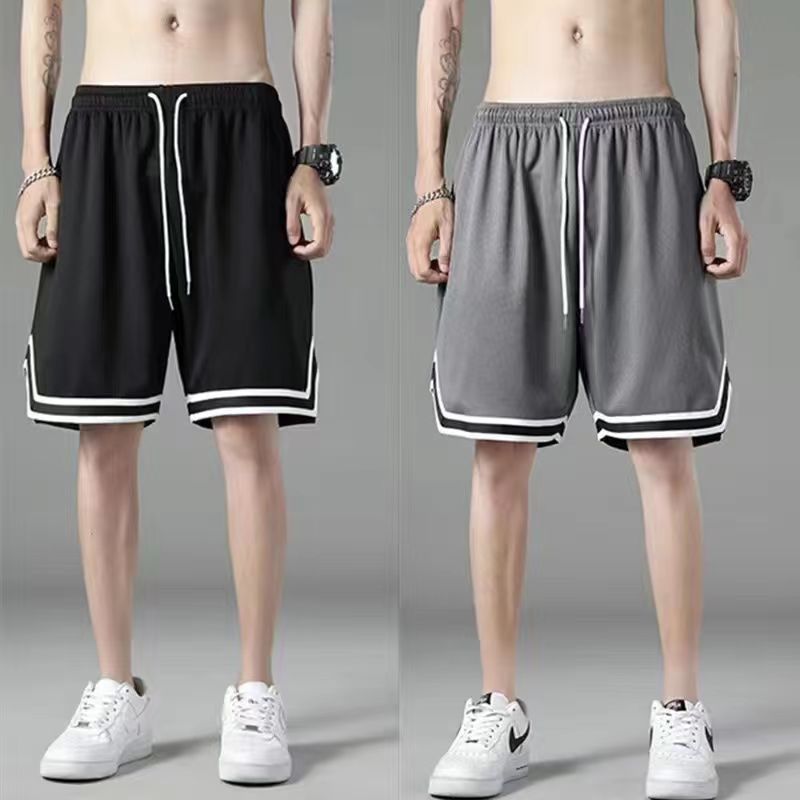 여름 아이스 실크 메쉬 스포츠 반바지 남자의 느슨한 얇은 통기성 유행 빠른 건조 바지 비치 대형 바지