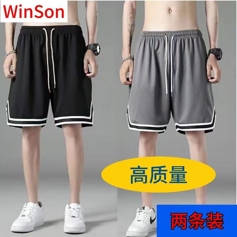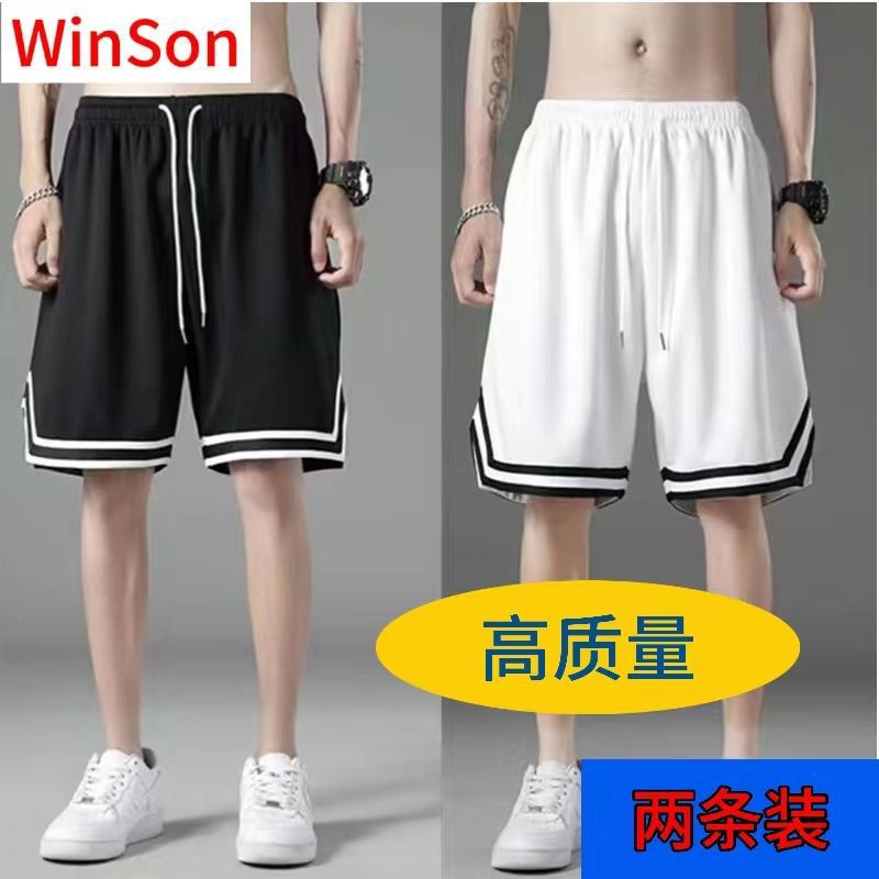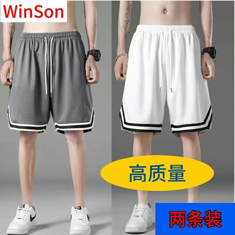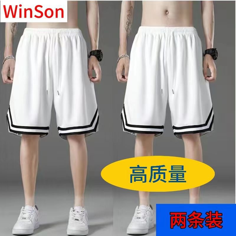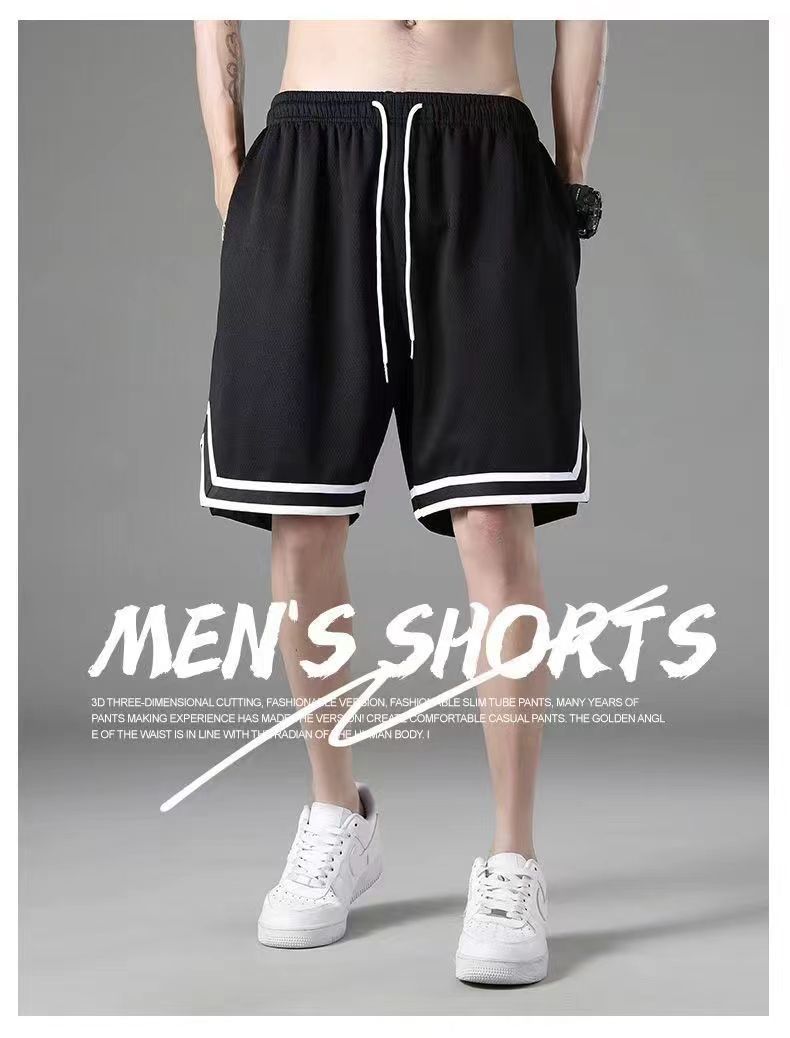 여름 아이스 실크 메쉬 스포츠 반바지 남자의 느슨한 얇은 통기성 유행 빠른 건조 바지 비치 대형 바지