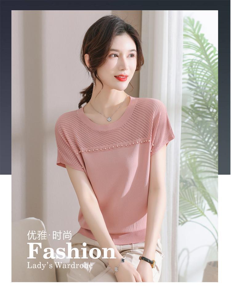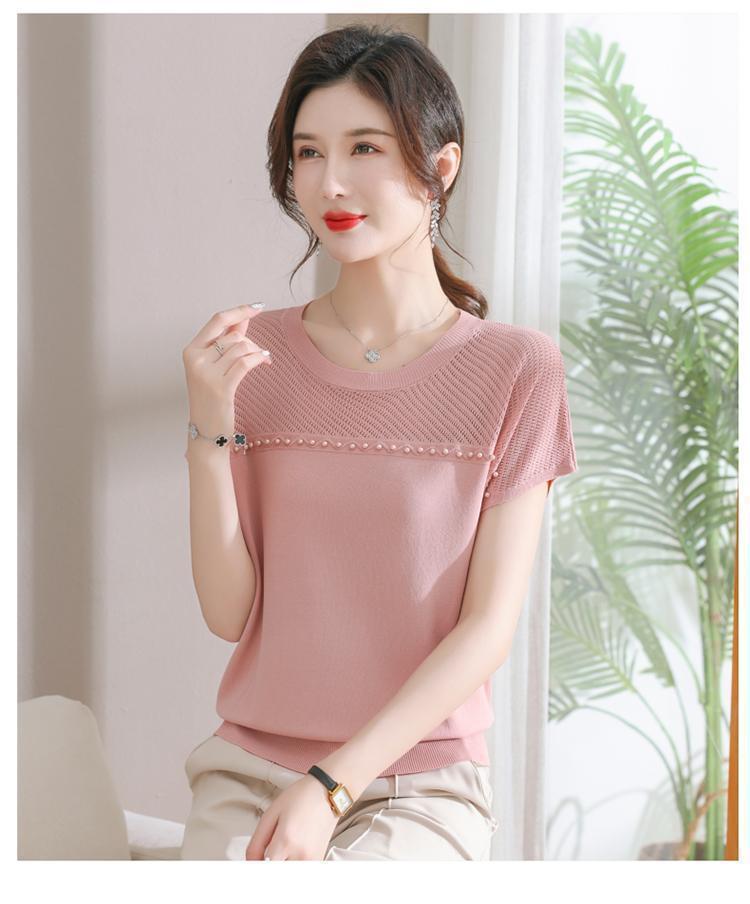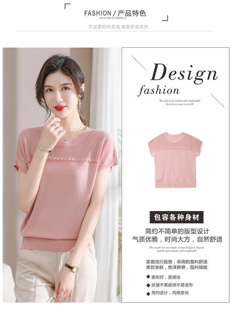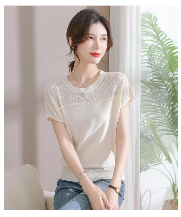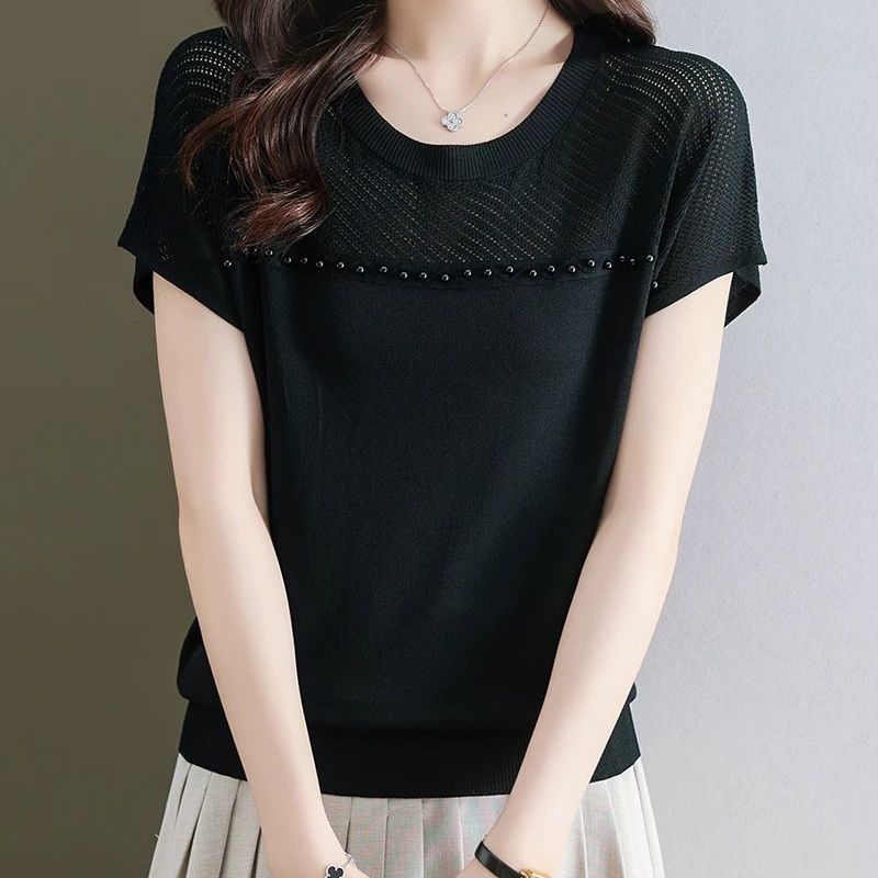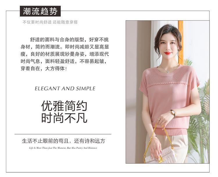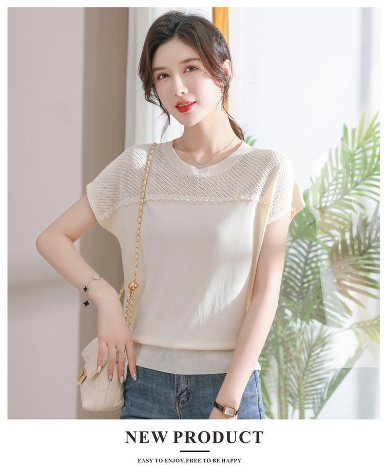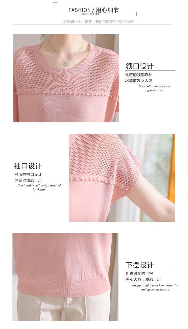 2024 년 여름 새 스웨터 탑 반팔 얇은 아이스 실크 셔츠 여성용 스몰 사이즈 올 매치 루즈