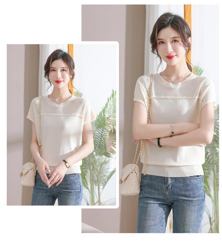 2024 년 여름 새 스웨터 탑 반팔 얇은 아이스 실크 셔츠 여성용 스몰 사이즈 올 매치 루즈스토어 가기