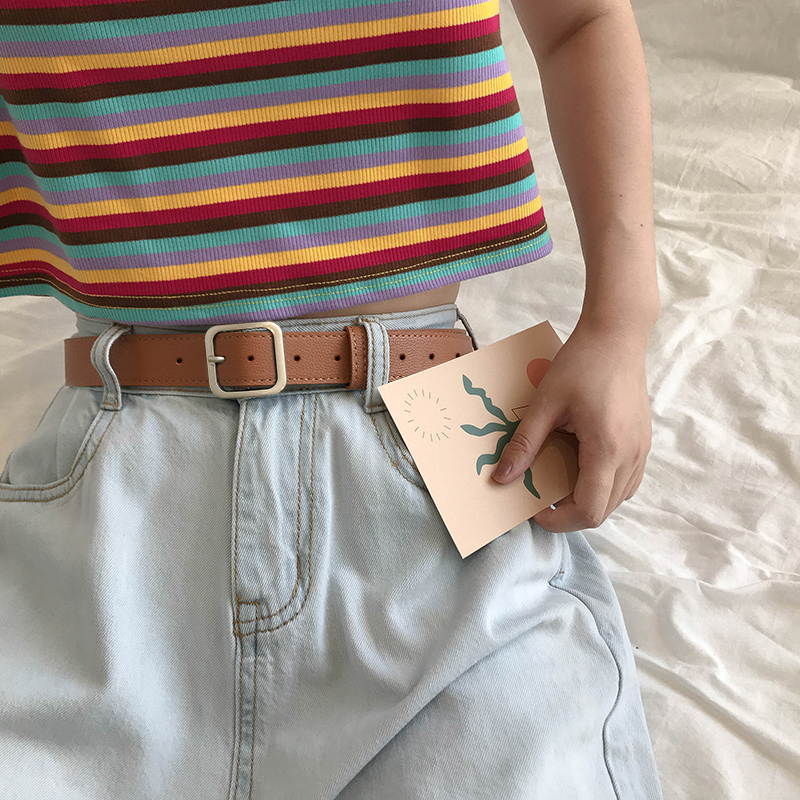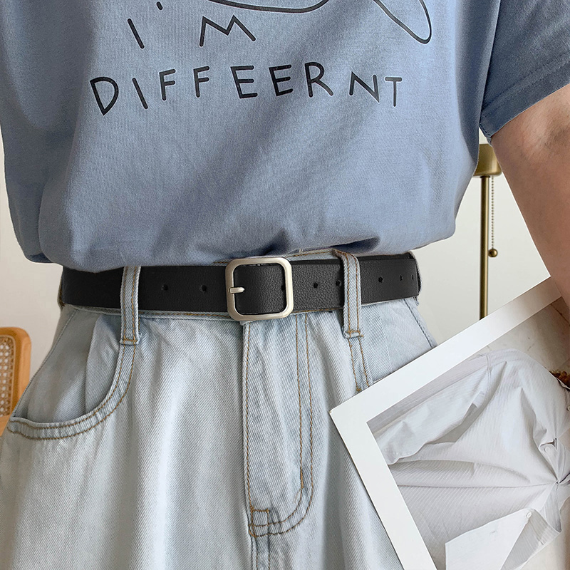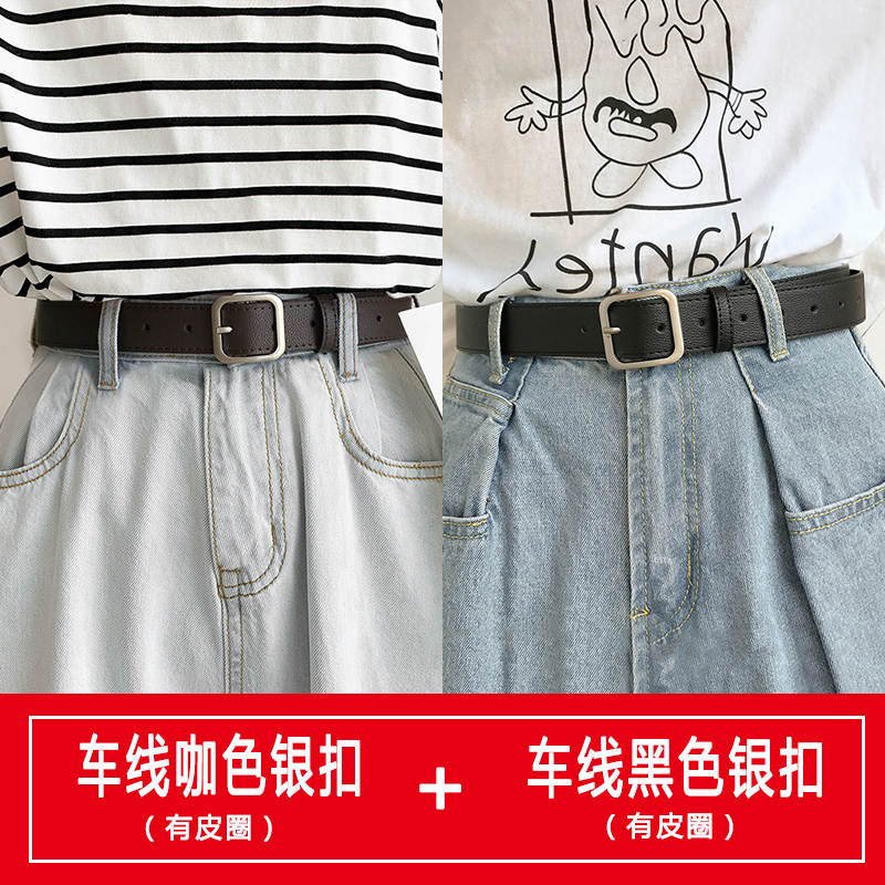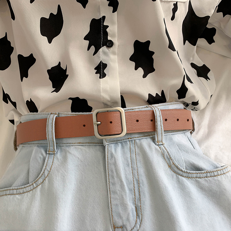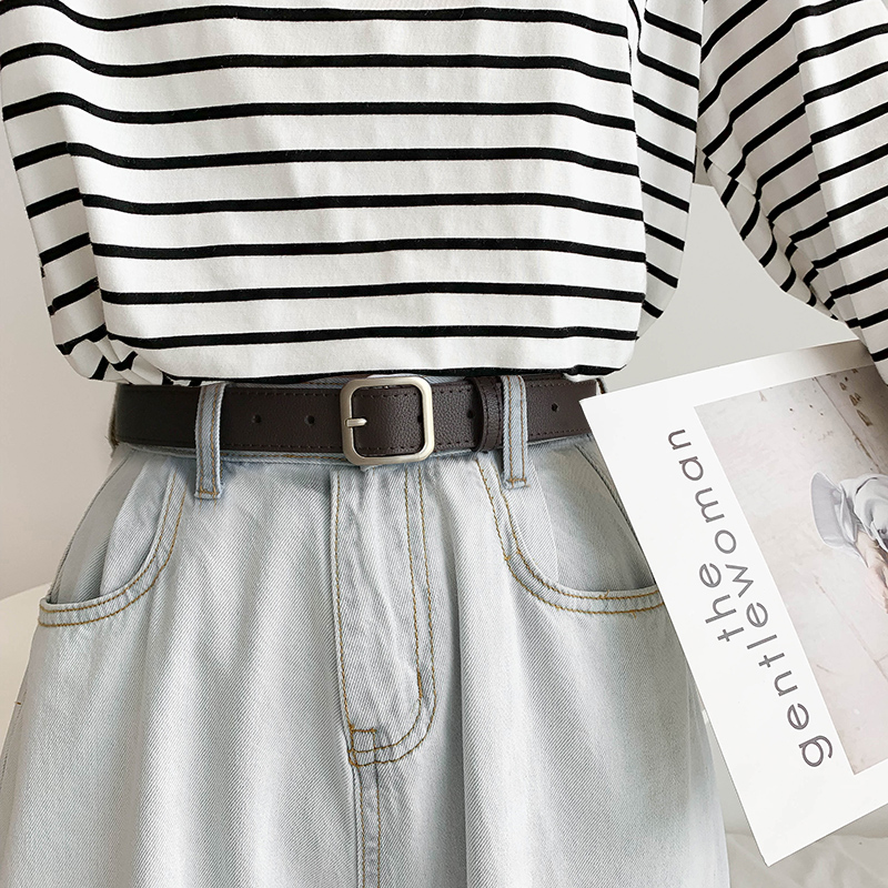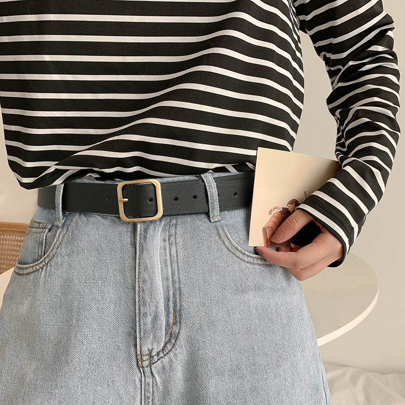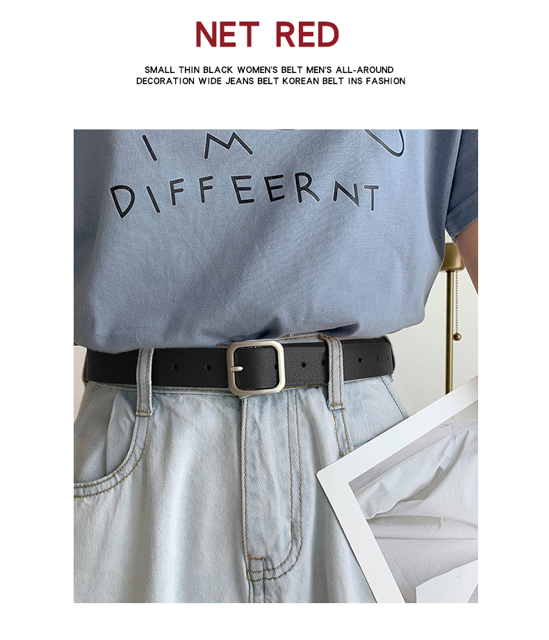 여성 벨트 여성 스퀘어 버클 인터넷 인기 인스타그램 스타일 유행 한국 스타일 단순 올 매치 장식 블랙 청바지 벨트
