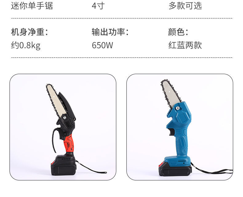 리튬 배터리 충전식 전기 체인 톱 높은 전원 단일 손 전기 톱 가정용 소형 휴대용 미니 휴대용 전기 체인