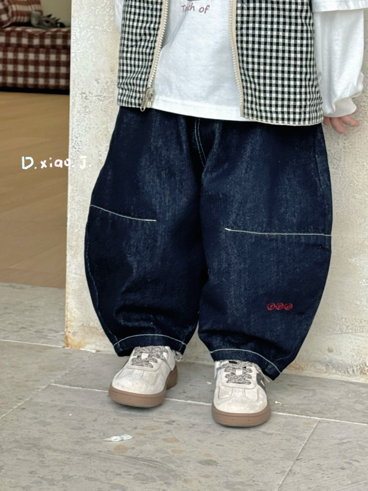 사이즈 롤 25 어린이 봄 바지 야외 느슨한 서양식 청바지 다크 블루 부드러운 손잡이 넓은 다리 청바지