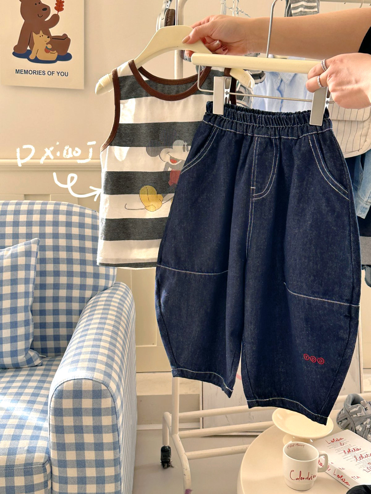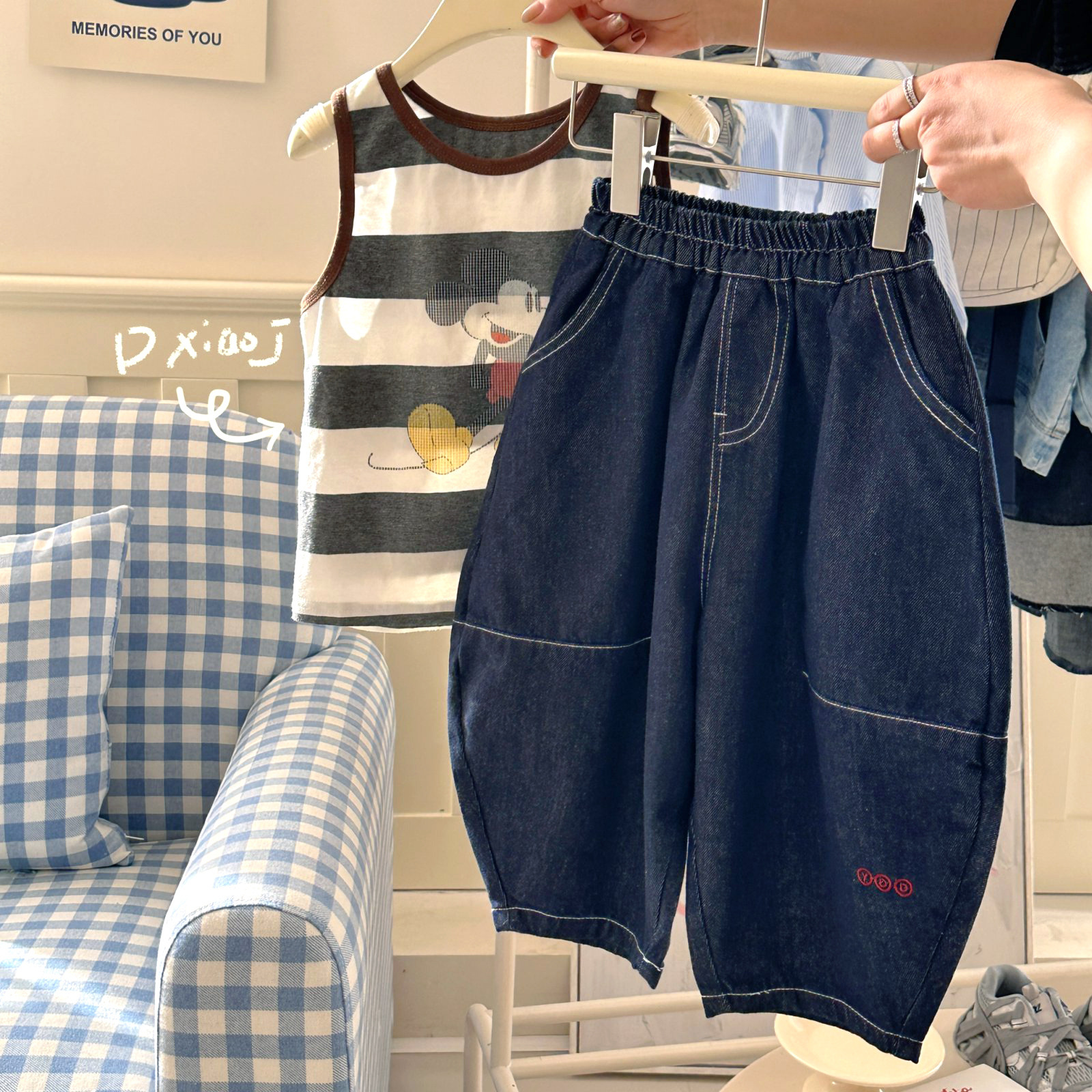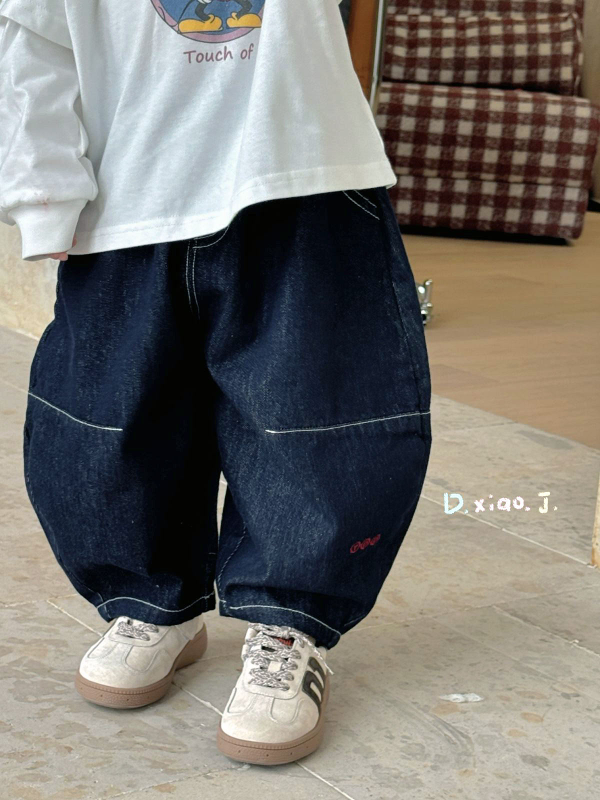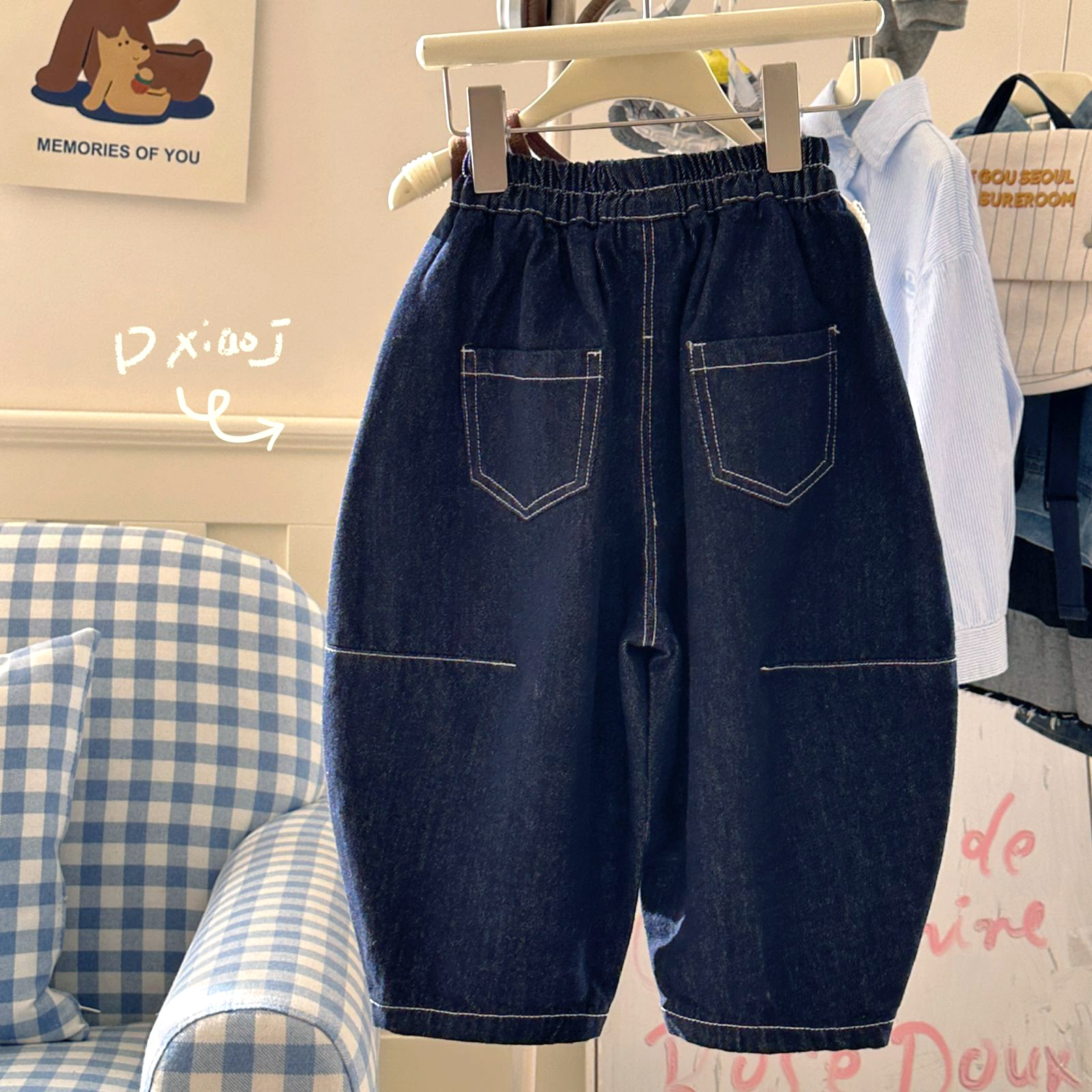 사이즈 롤 25 어린이 봄 바지 야외 느슨한 서양식 청바지 다크 블루 부드러운 손잡이 넓은 다리 청바지스토어 가기