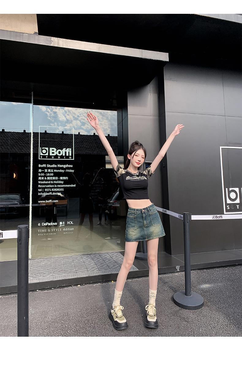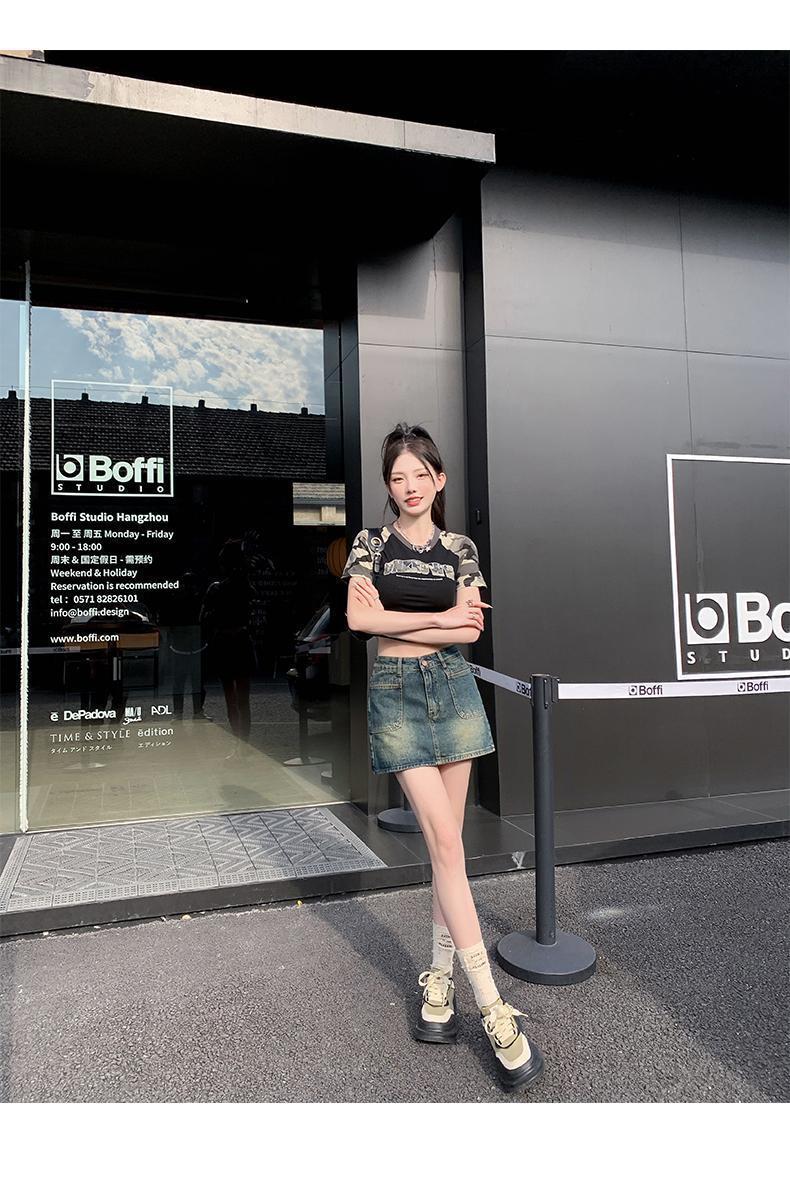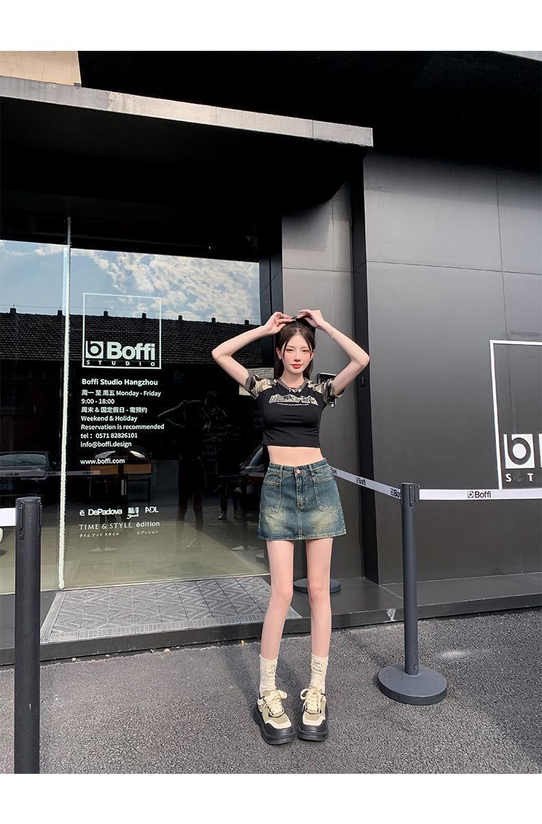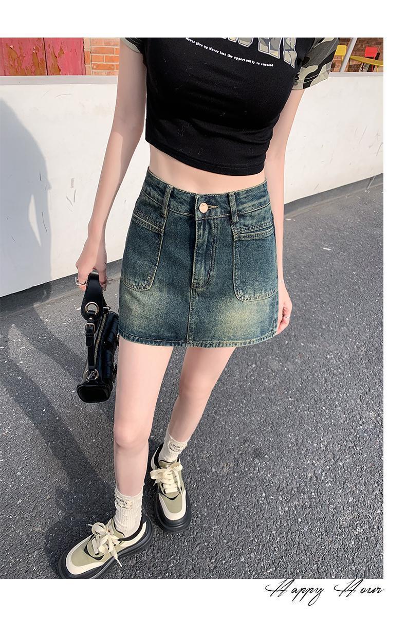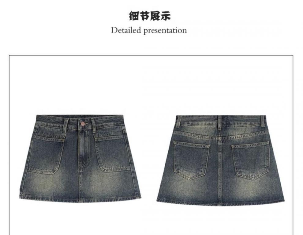 봄과 여름 2024 새로운 미국 스타일 복고풍 데님 스커트 여성 스파이스 소녀 높은 허리 슬리밍 안티 눈부심 힙합 스커트스토어 가기