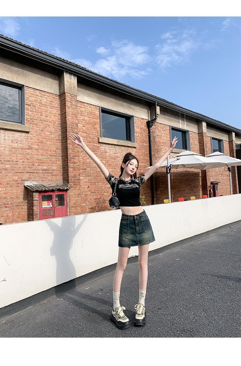 봄과 여름 2024 새로운 미국 스타일 복고풍 데님 스커트 여성 스파이스 소녀 높은 허리 슬리밍 안티 눈부심 힙합 스커트