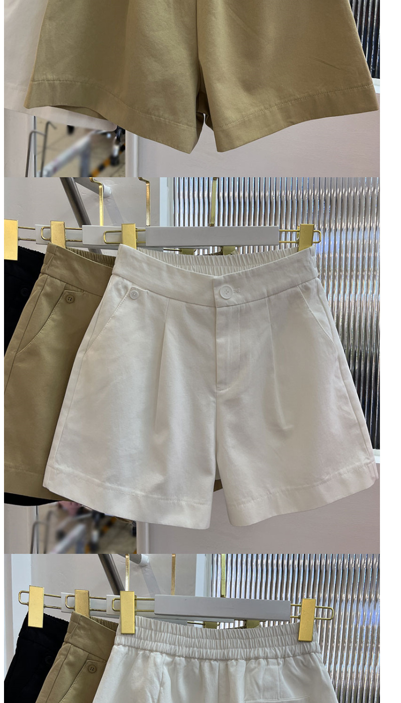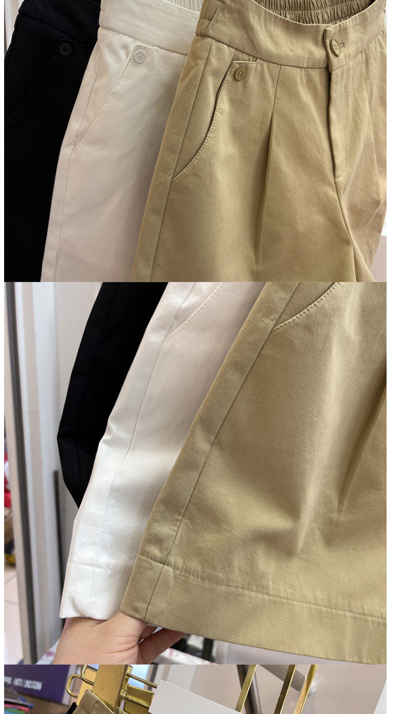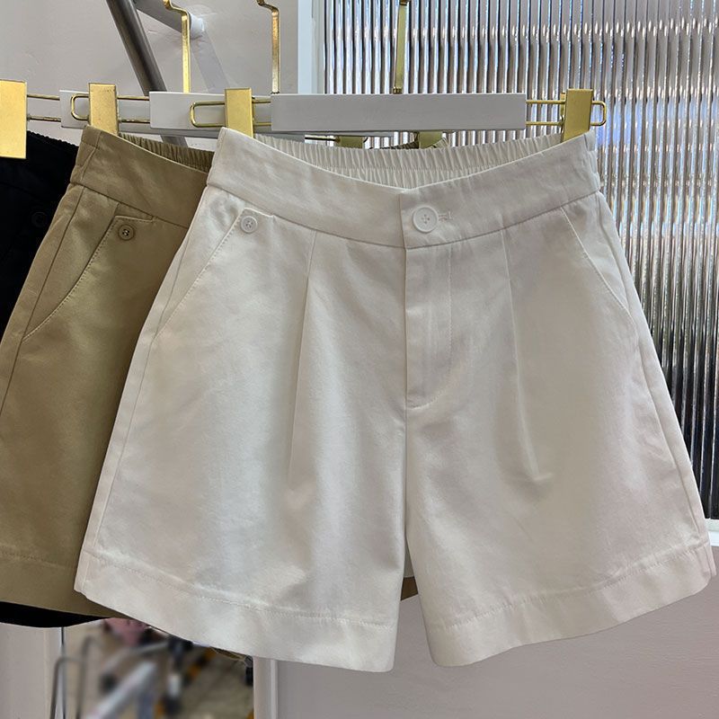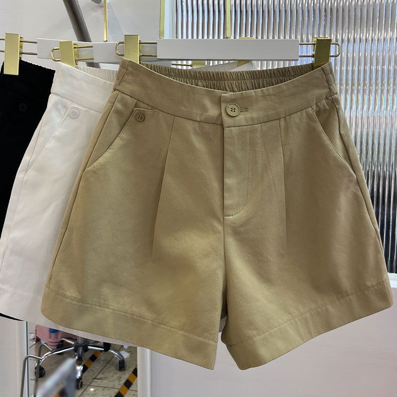 2024 면화 카키 세트 반바지 여성 캐주얼 바지 2024 여름 외부 착용 슬리밍 느슨한 넓은 다리 바지 A 자형 핫