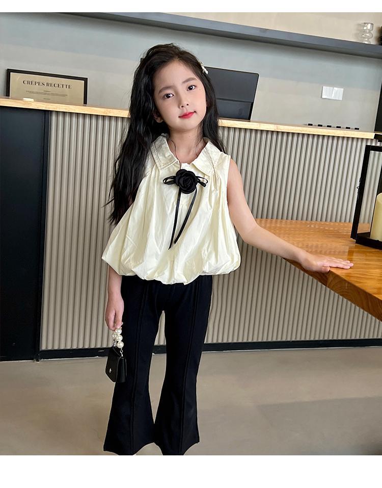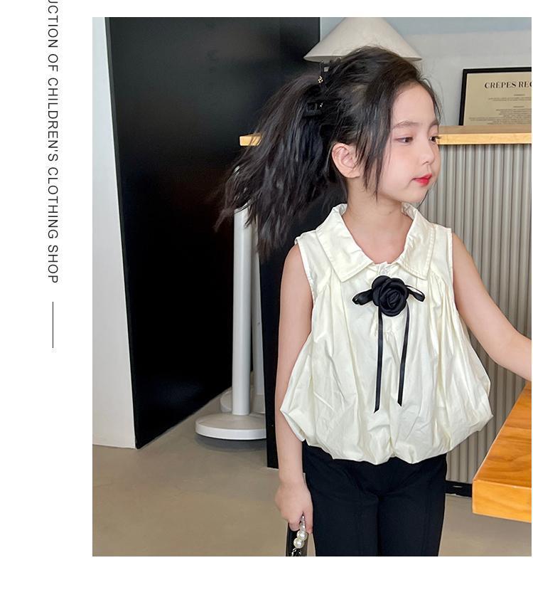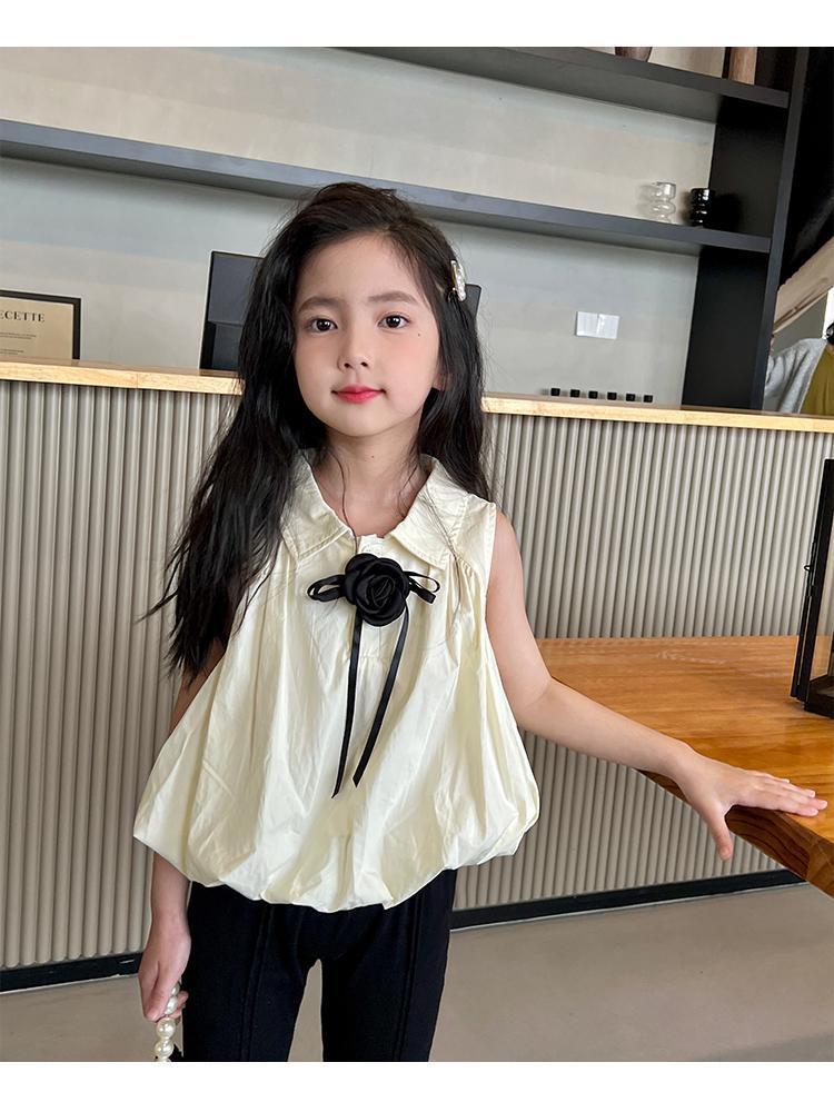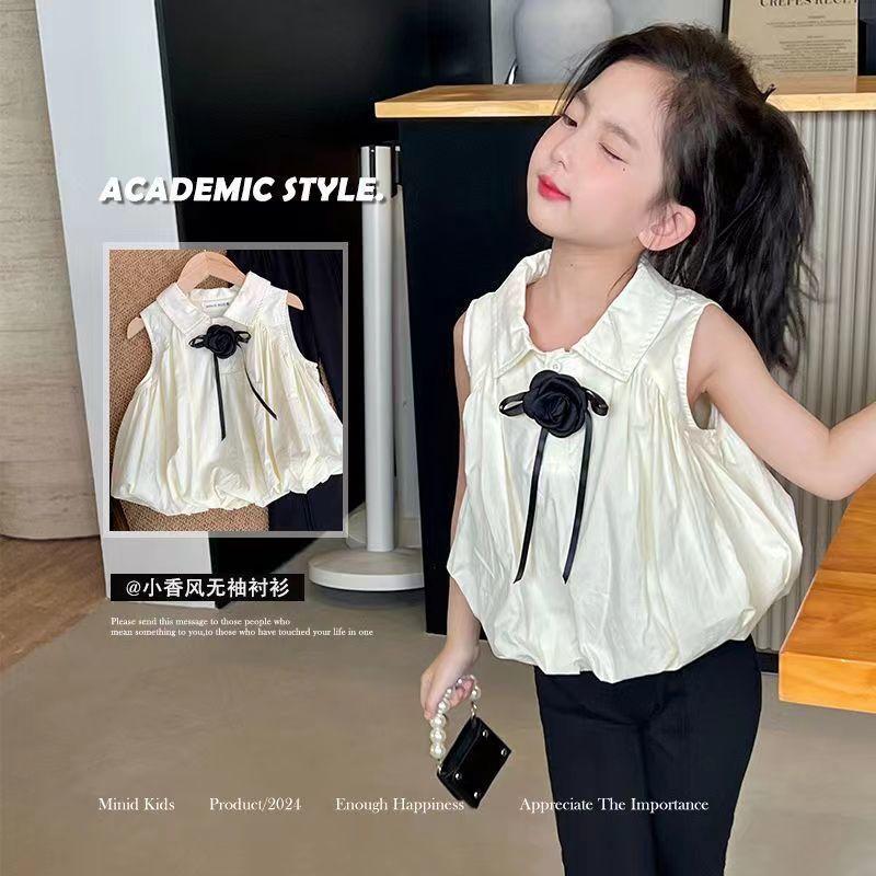 여자 프랑스 스타일 향기로운 스타일 셔츠 톱 2025 여름 새로운 어린이 한국 스타일 외국 스타일 단색 꽃 버드 민소매 조끼