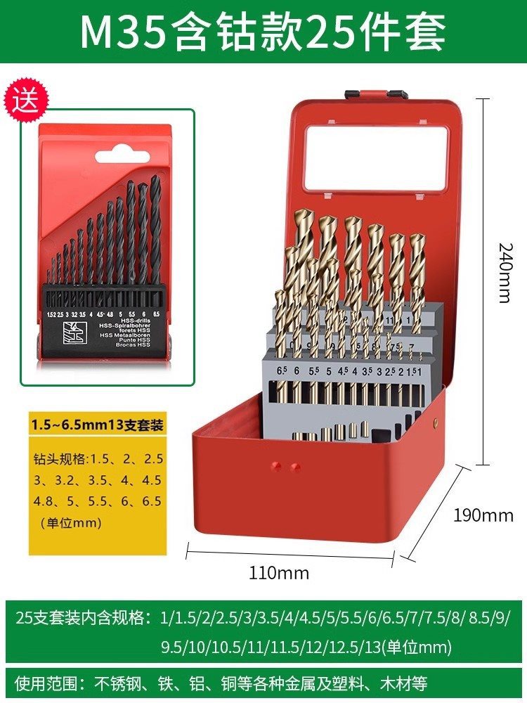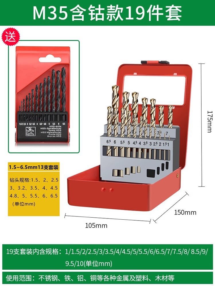 트위스트 드릴 M35 스테인레스 스틸 코발트 함유 핸드 드릴 스틸 텅스텐 스틸 합금 스트레이트 섕크 터렛 다콴스토어 가기