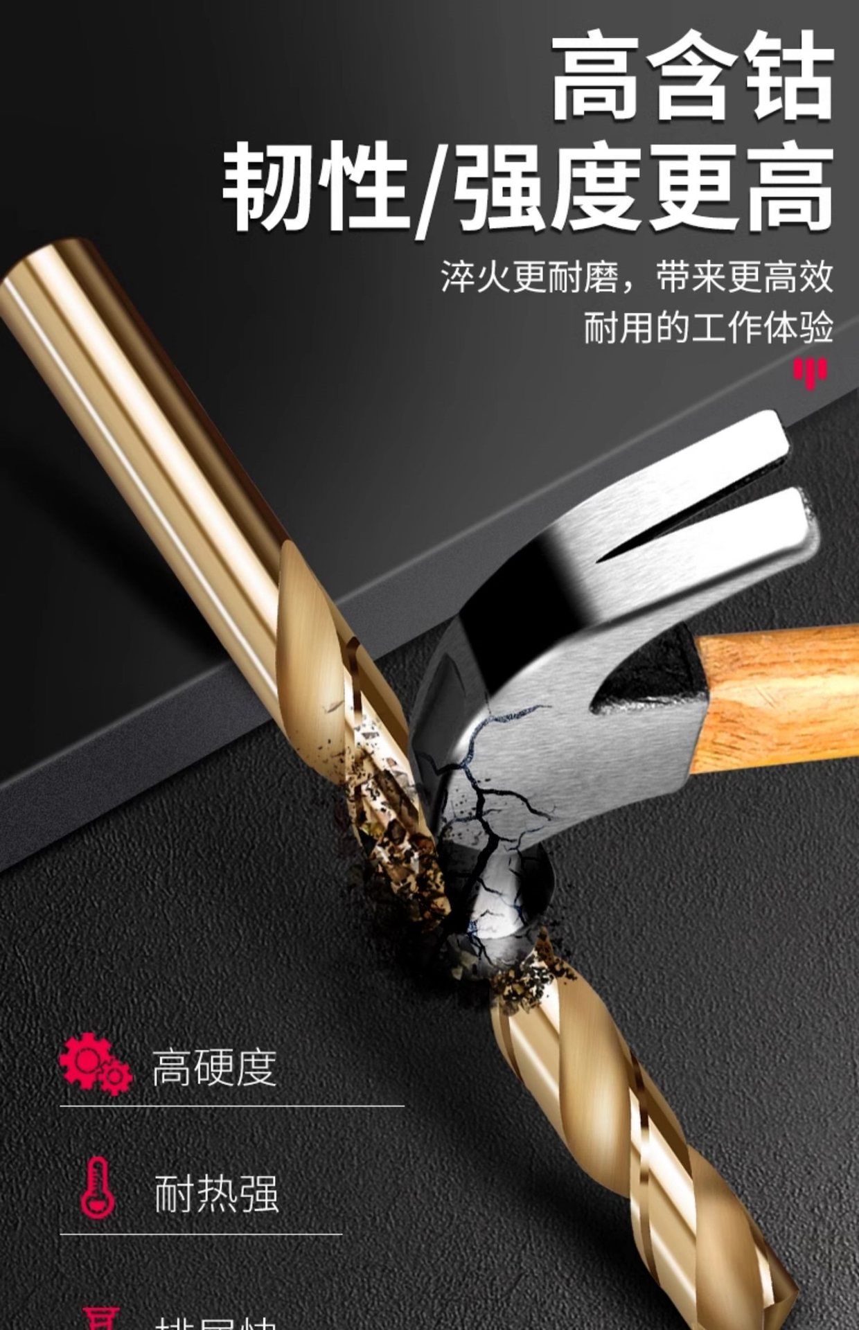 트위스트 드릴 M35 스테인레스 스틸 코발트 함유 핸드 드릴 스틸 텅스텐 스틸 합금 스트레이트 섕크 터렛 다콴