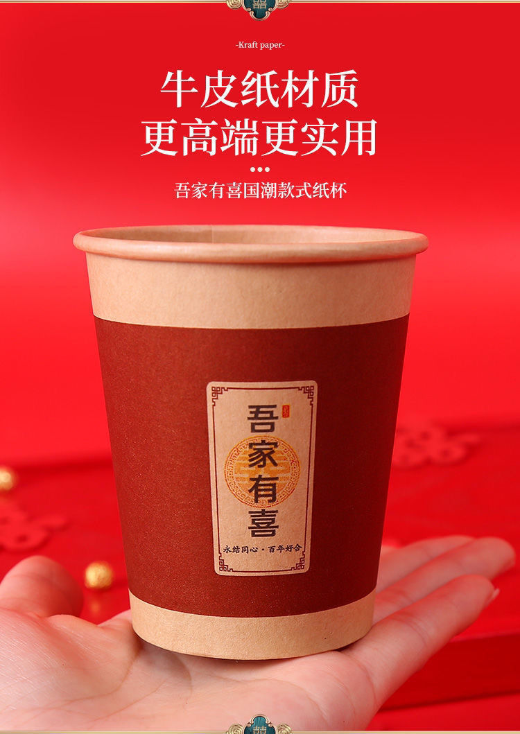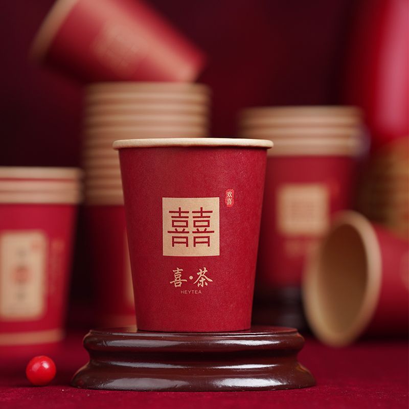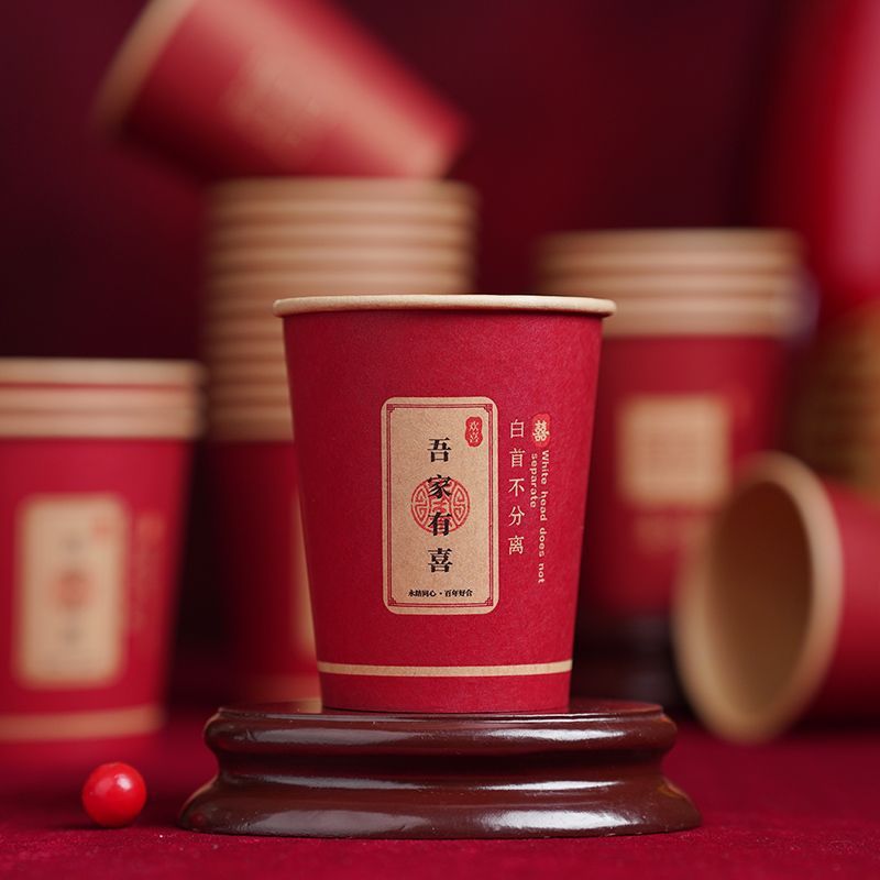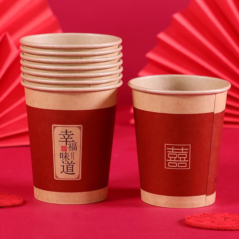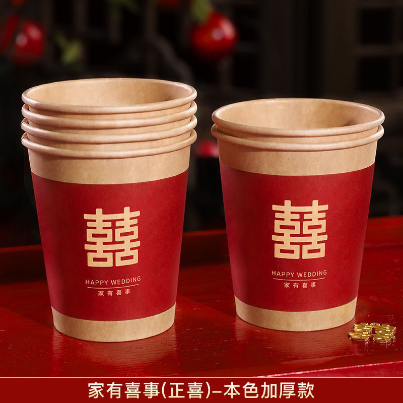 웨딩 페이퍼 컵 일회용 해피 컵 웨딩 연회 레드 두꺼운 종이 컵 웨딩 가정용 워터 컵 웨딩 용품스토어 가기