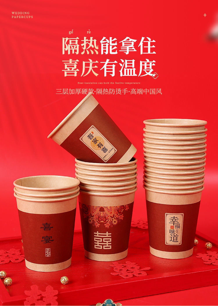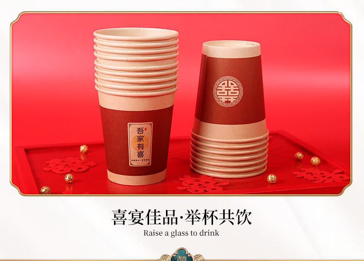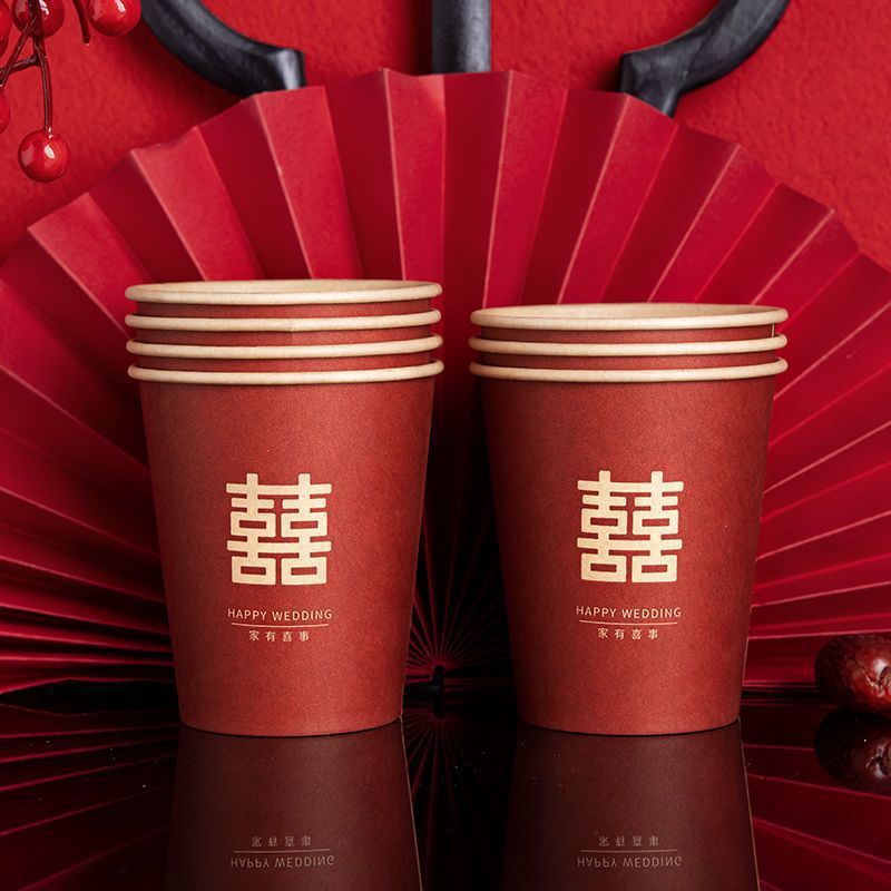 웨딩 페이퍼 컵 일회용 해피 컵 웨딩 연회 레드 두꺼운 종이 컵 웨딩 가정용 워터 컵 웨딩 용품