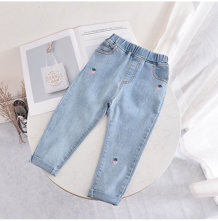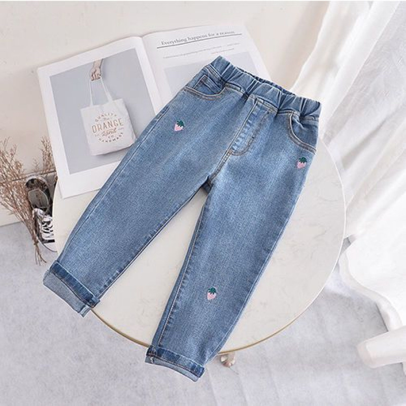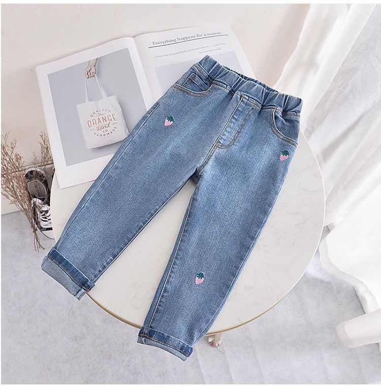 2025 어린이 봄 새 여아 청바지 봄과 가을 아기 바지 세련된 소녀의 데님 스트레치 바지스토어 가기