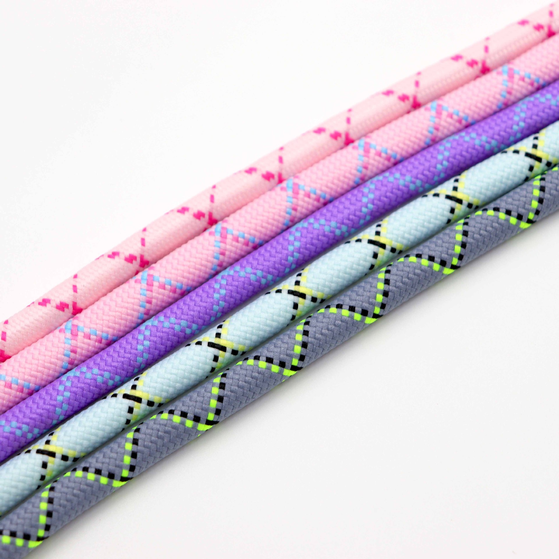 8mm 폴리 에스터 코어 포장 라운드 로프 재고 휴대 전화 끈 뒤로 밧줄 땋은 꽃 전화 케이스 끈 애완 동물 견인 로프