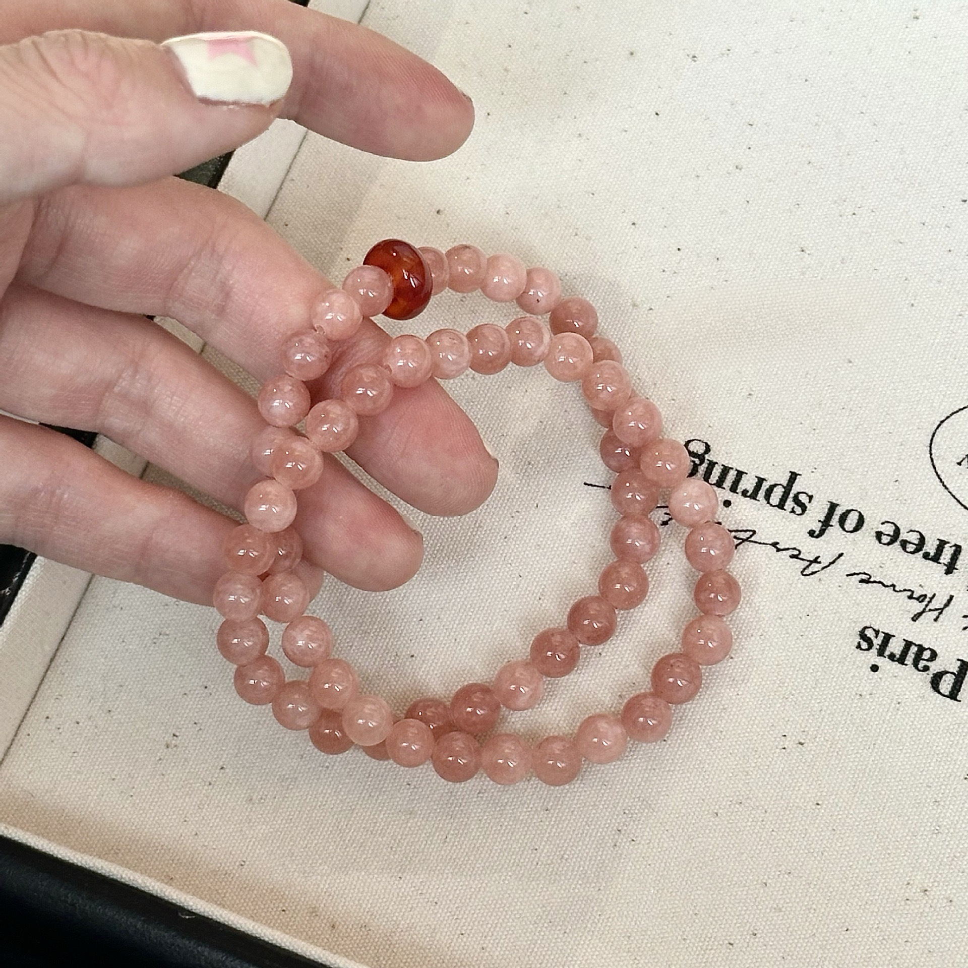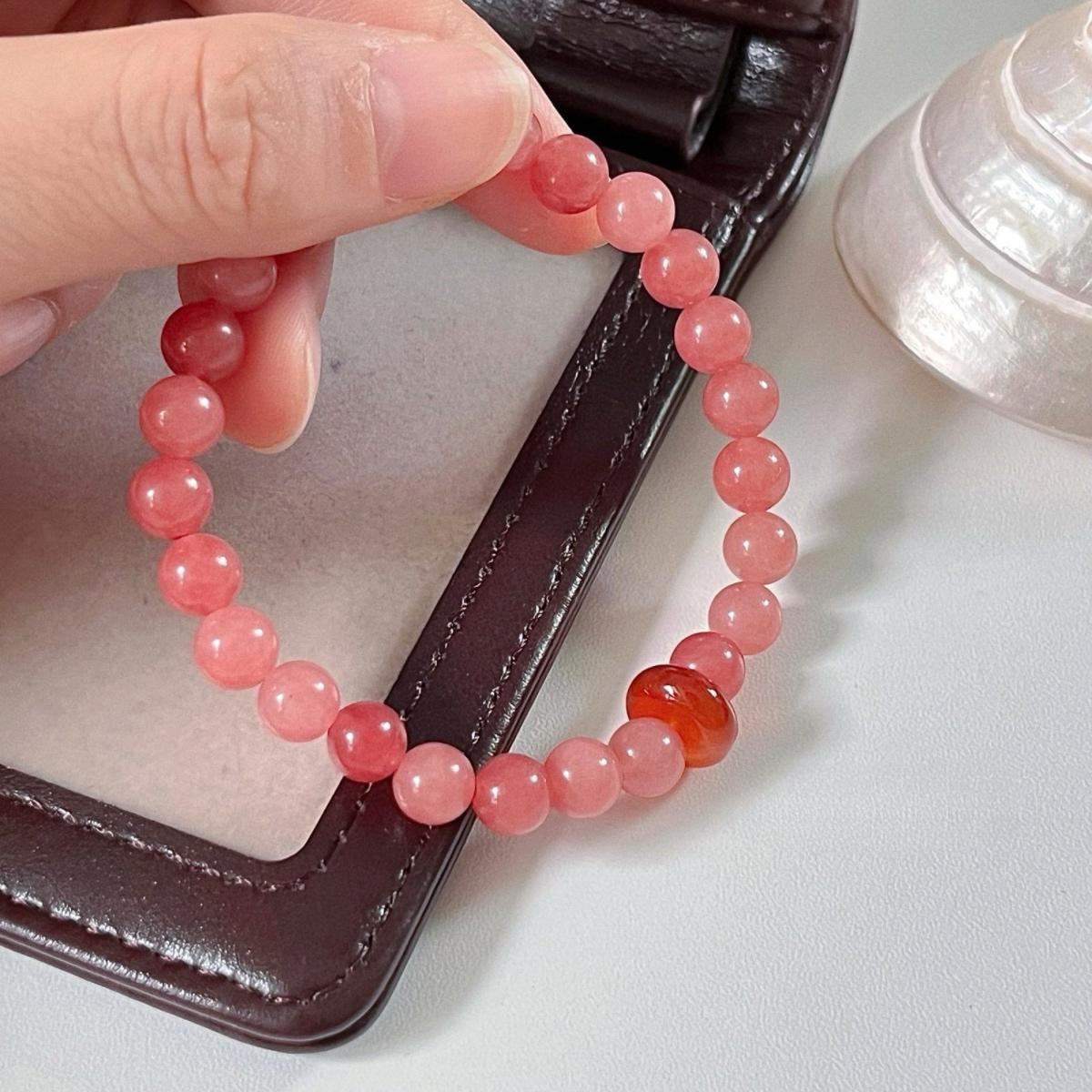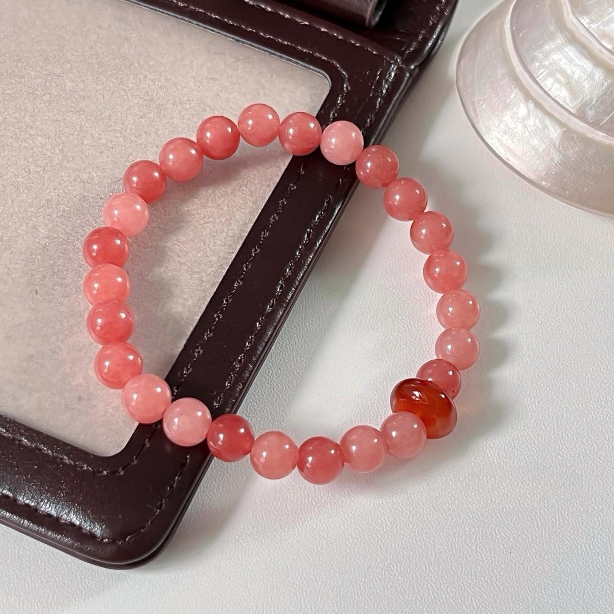 "복숭아 꽃" 새로운 중국 고대 스타일 신선한 핑크 천연 돌 마노 겹쳐진 팔찌 안전 버클 팔찌 팔찌스토어 가기