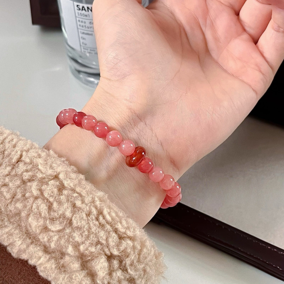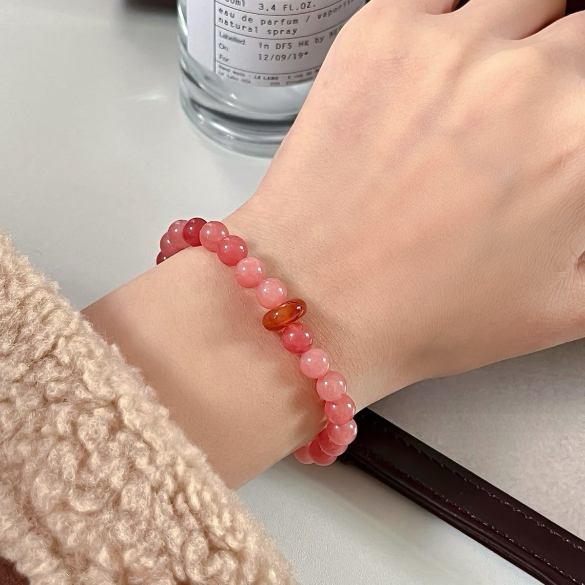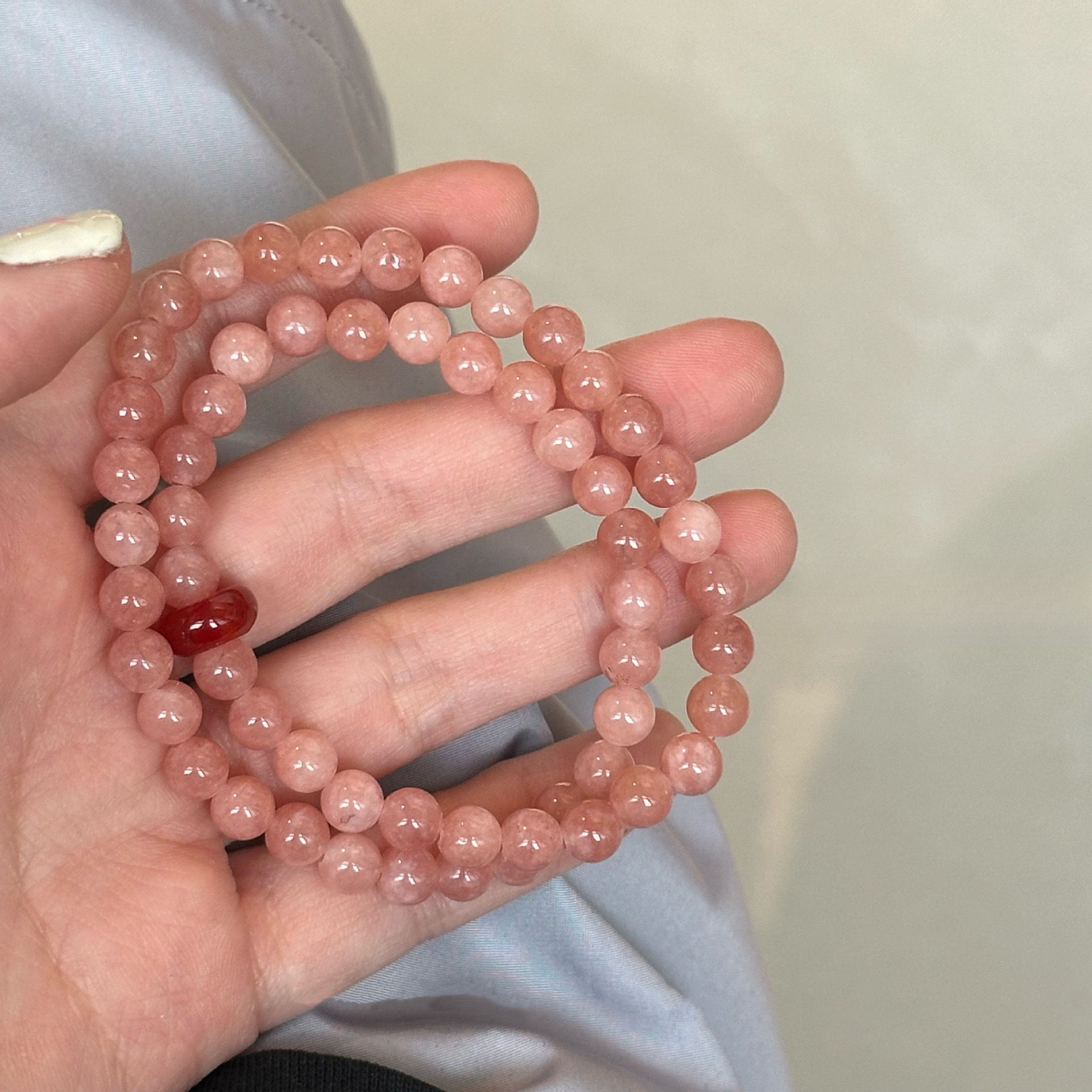 "복숭아 꽃" 새로운 중국 고대 스타일 신선한 핑크 천연 돌 마노 겹쳐진 팔찌 안전 버클 팔찌 팔찌스토어 가기
