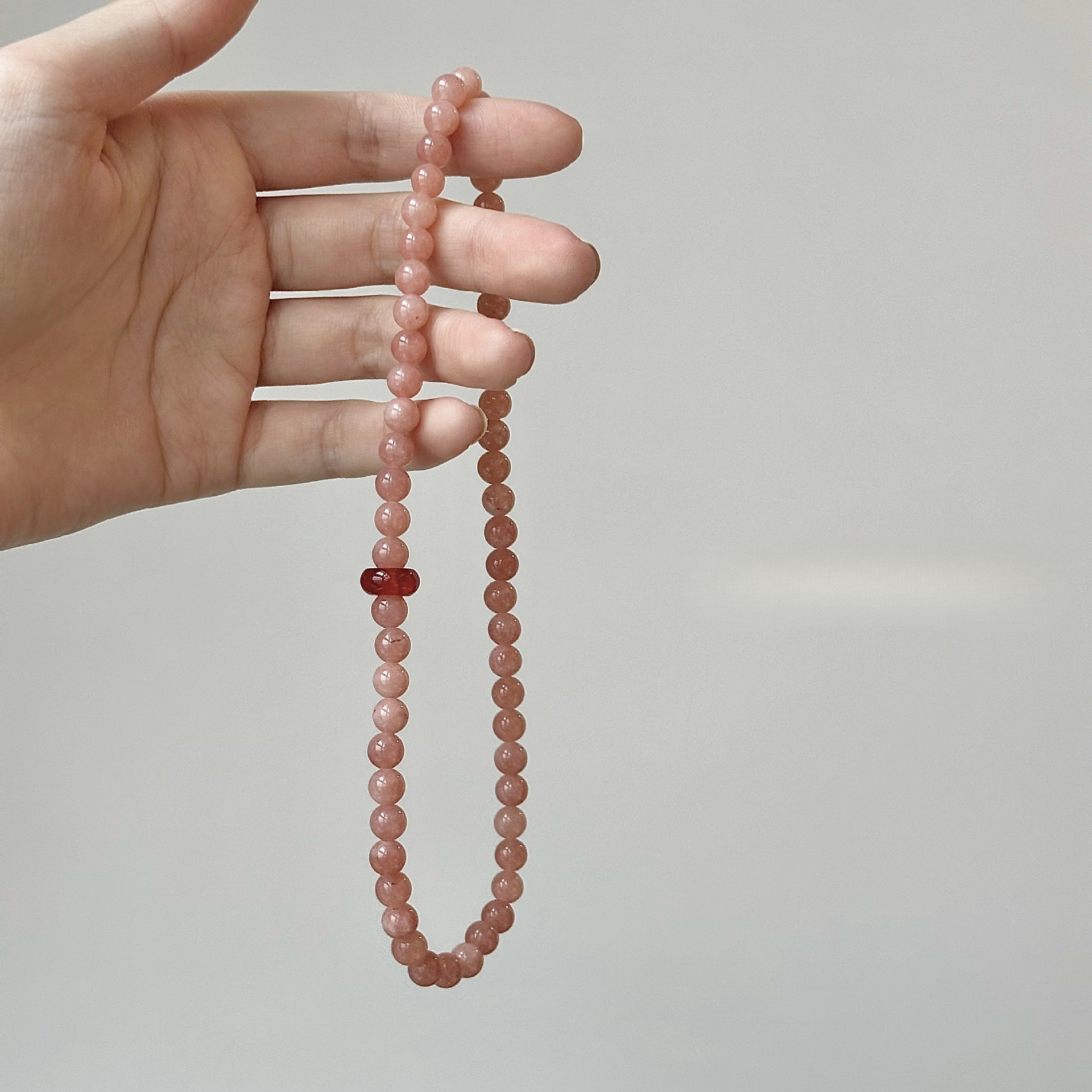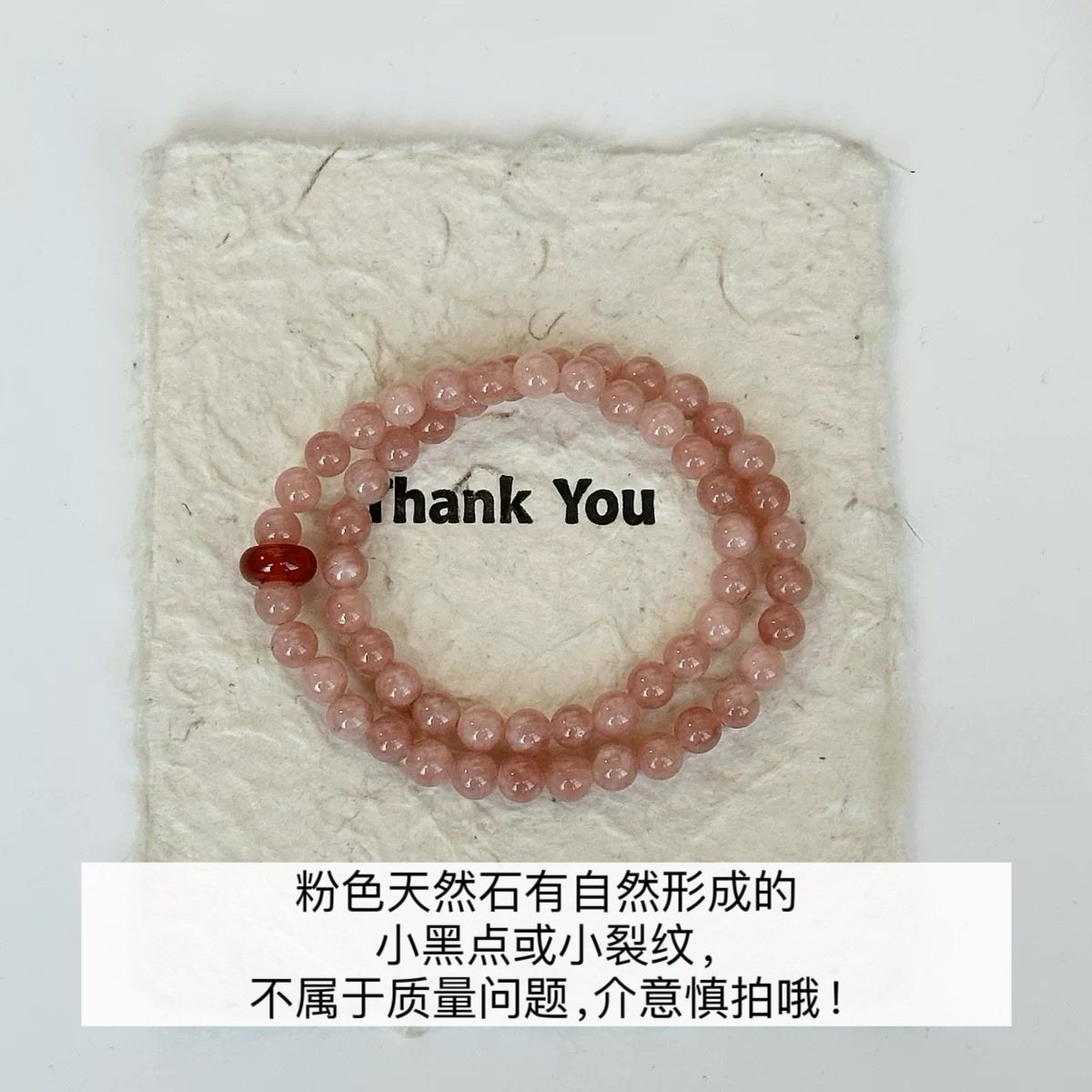 • 단일 원형 핑크 천연석 팔찌
