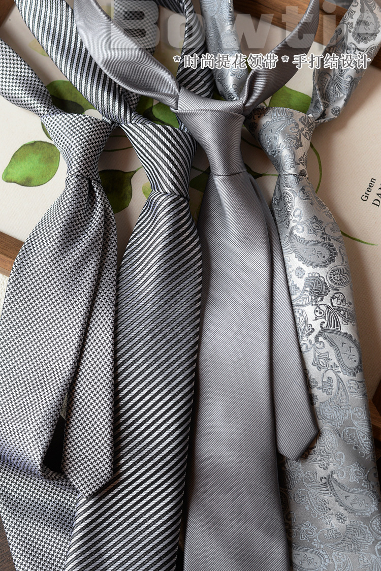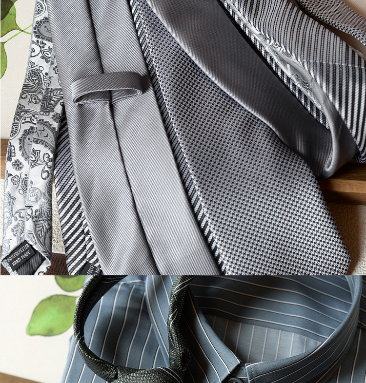제조업체 크로스보더 우아한 회색 넥타이 고급 남성 정장 비즈니스 손으로 만든 작업 스트라이프 휴가스토어 가기