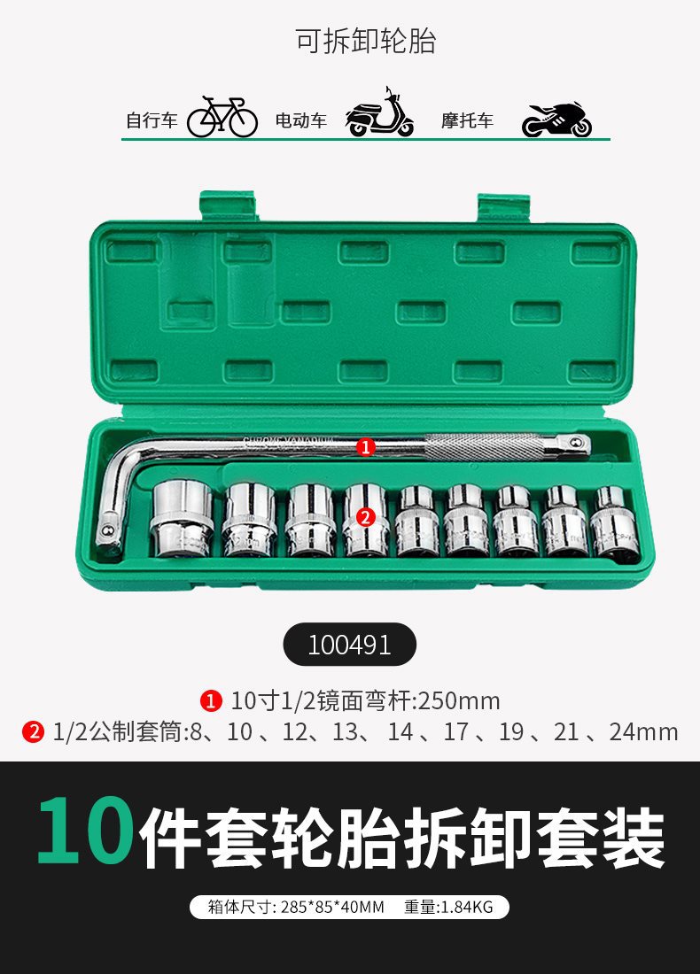 열 조각 큰 비행 소켓 렌치 도구 자동차 가정용 오토바이 수리 도구 타이어 렌치 도구