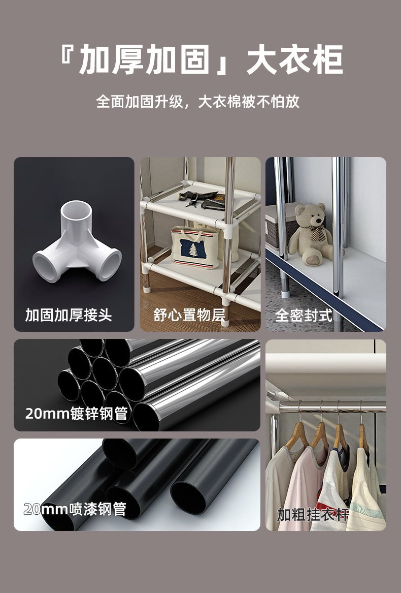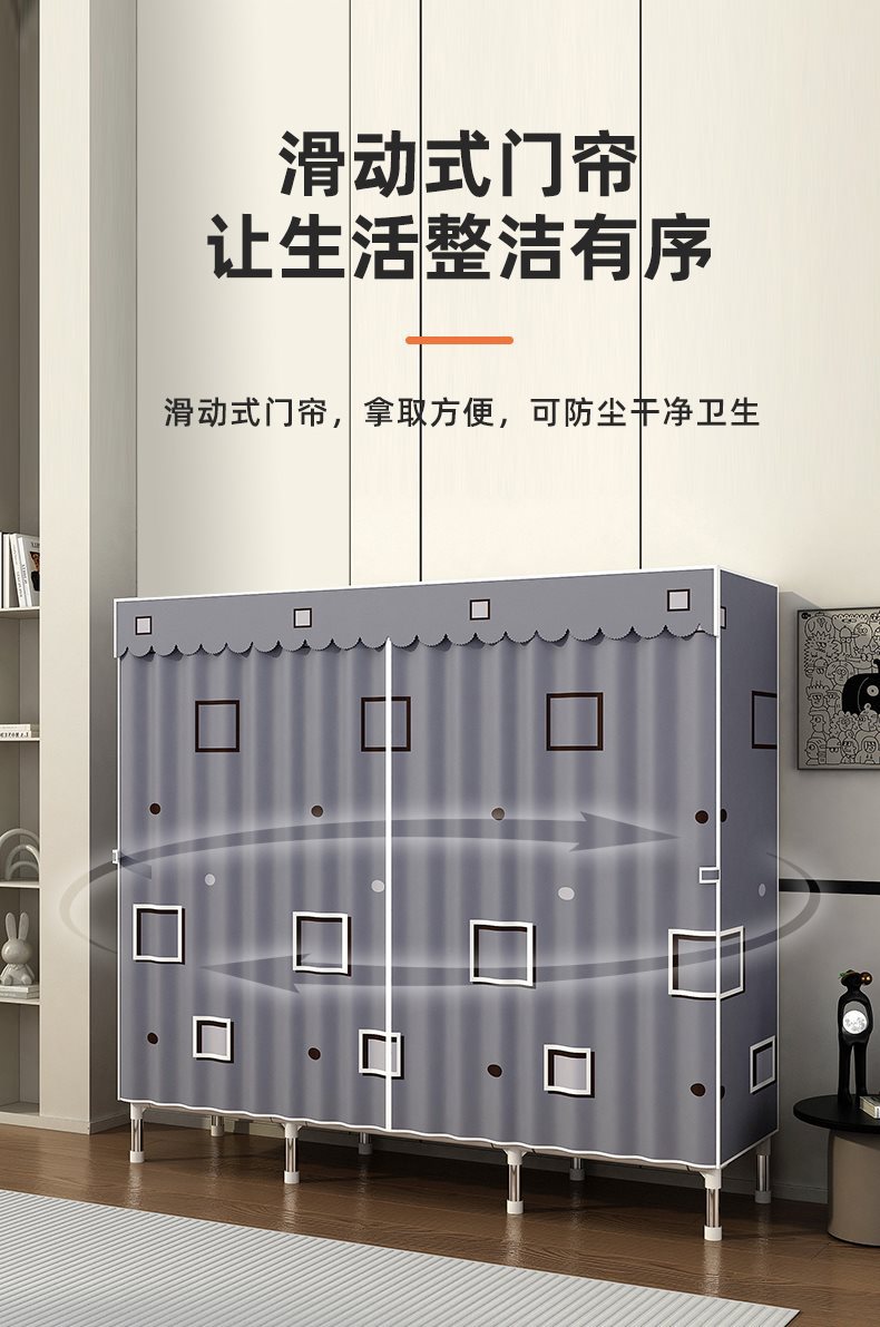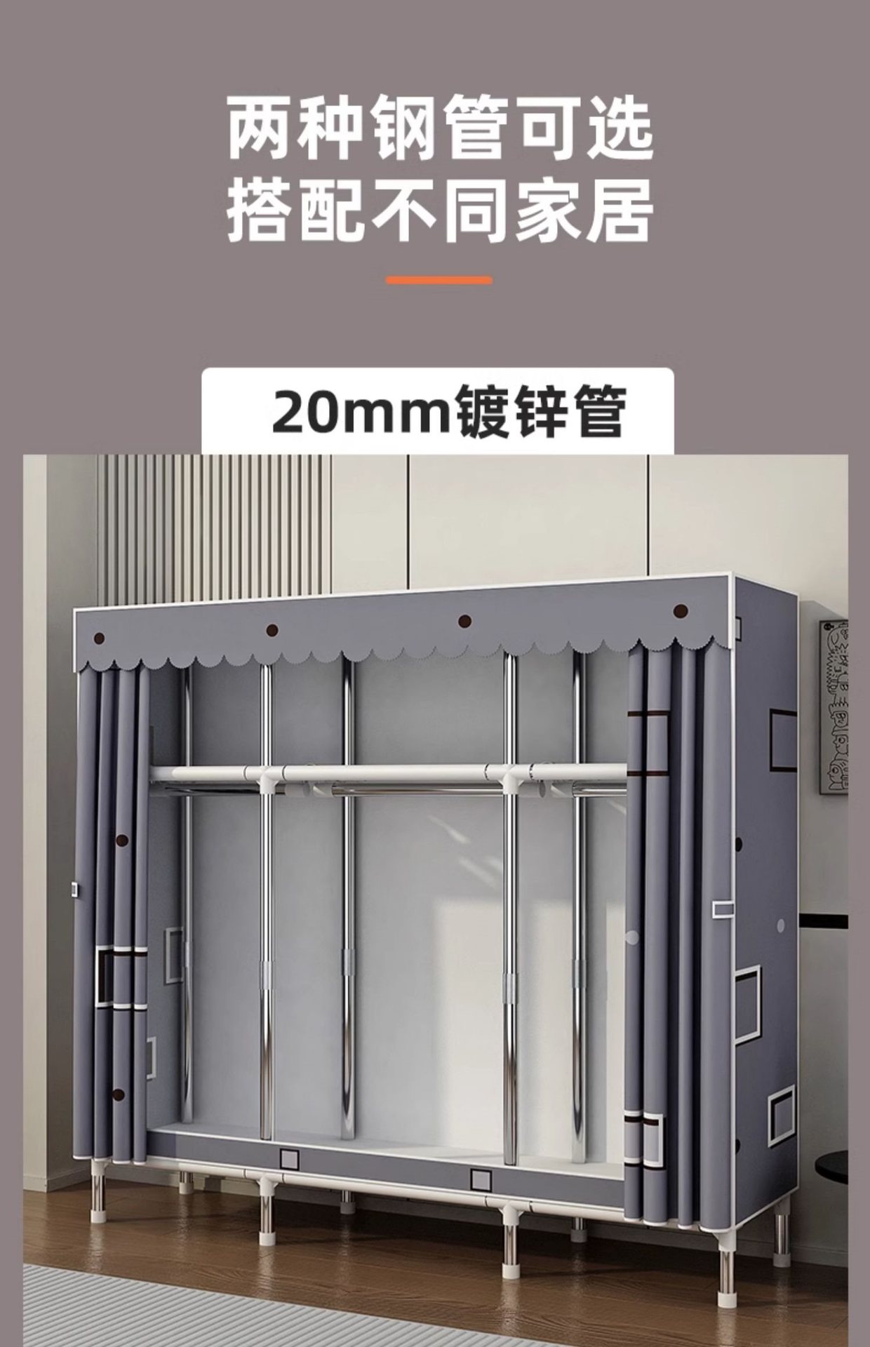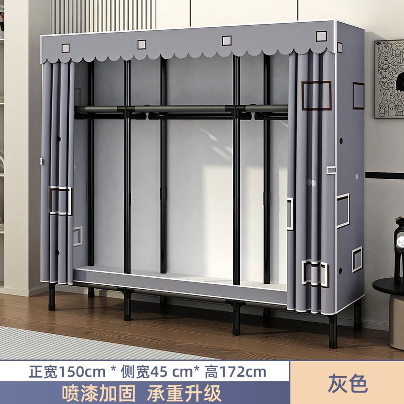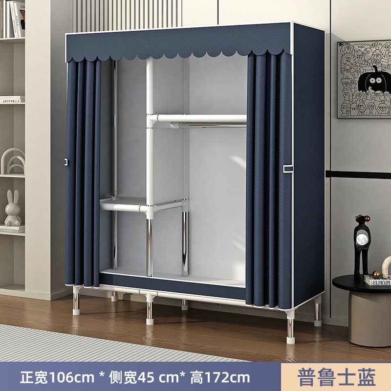 옷장 가정용 침실 조립 천 옷장 풀 스틸 프레임 두꺼운 간단한 천 옷장 걸이 옷장 임대 방스토어 가기