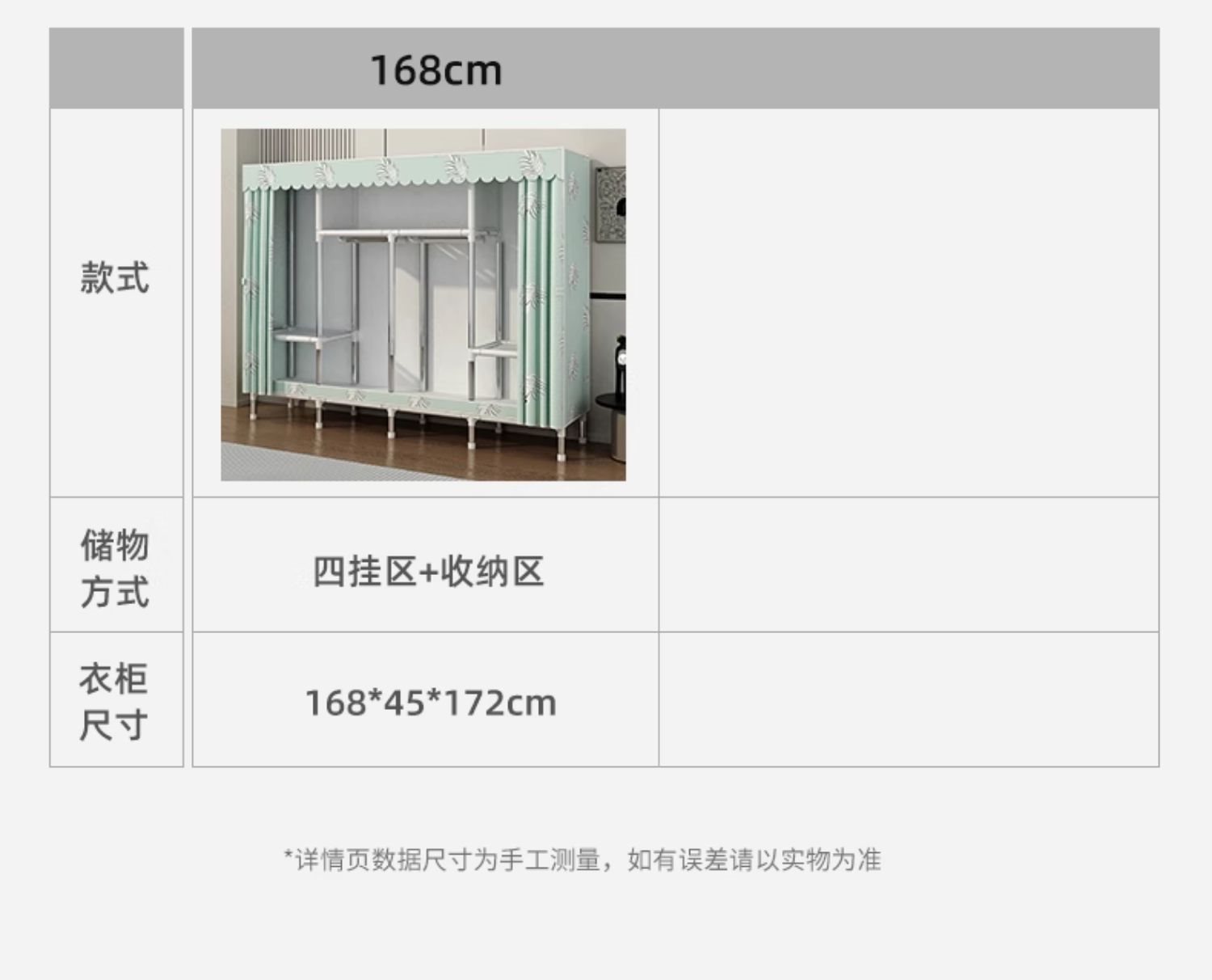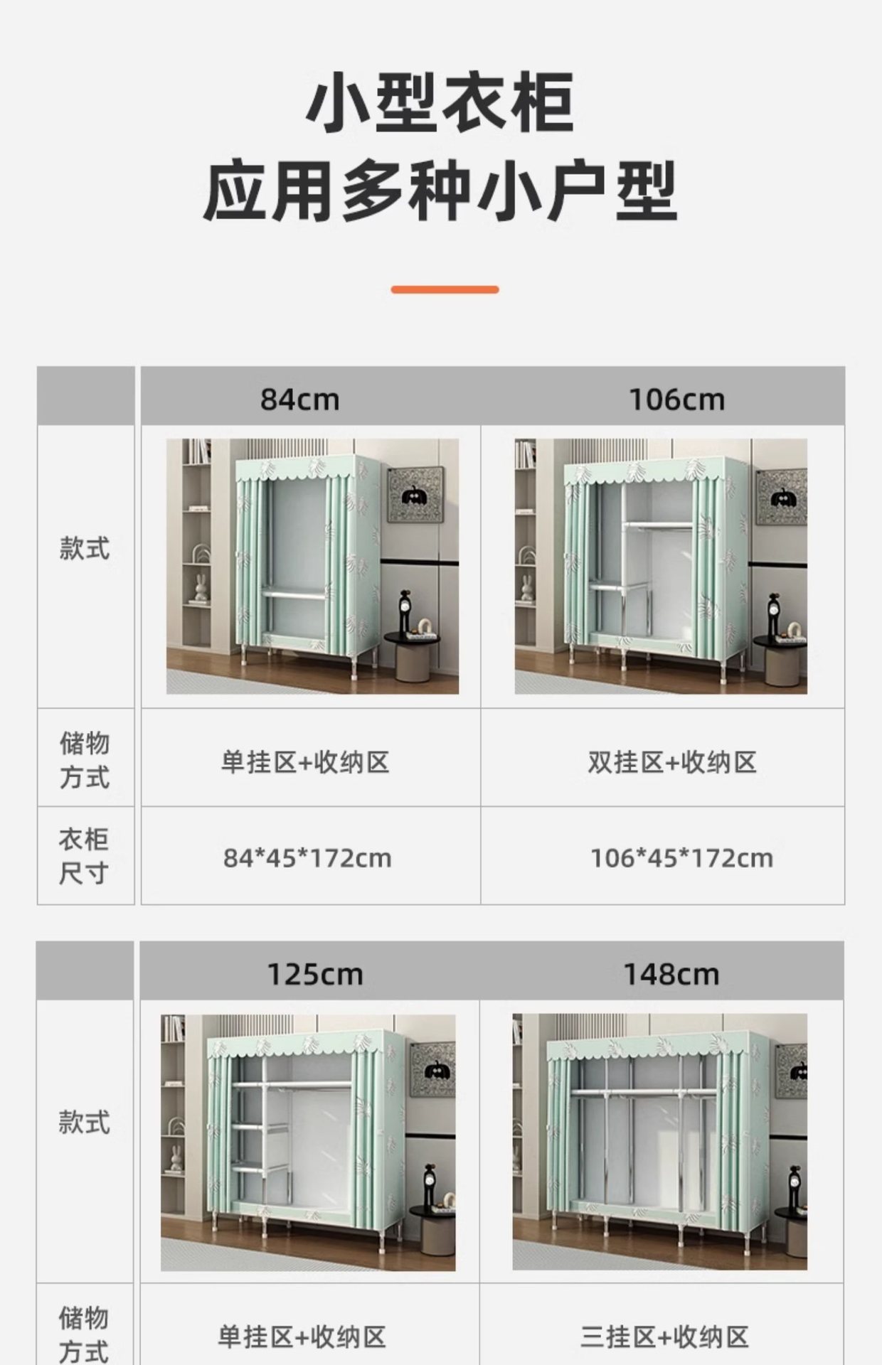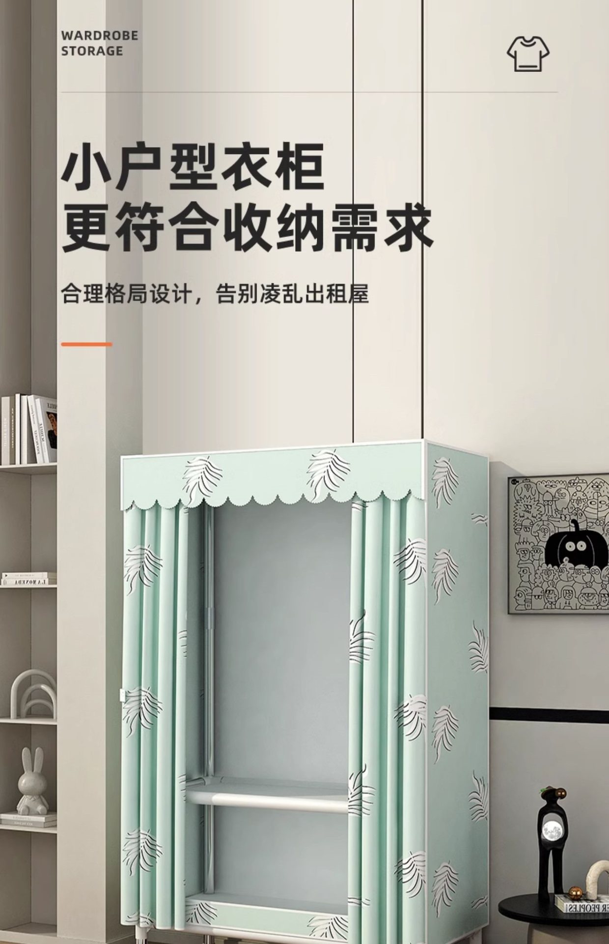 옷장 가정용 침실 조립 천 옷장 풀 스틸 프레임 두꺼운 간단한 천 옷장 걸이 옷장 임대 방스토어 가기