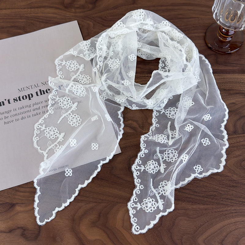 한국식 새 레이스 자수 스카프 여성 서양식 패션 올매치 긴 단색 얇은 장식 작은 스카프
