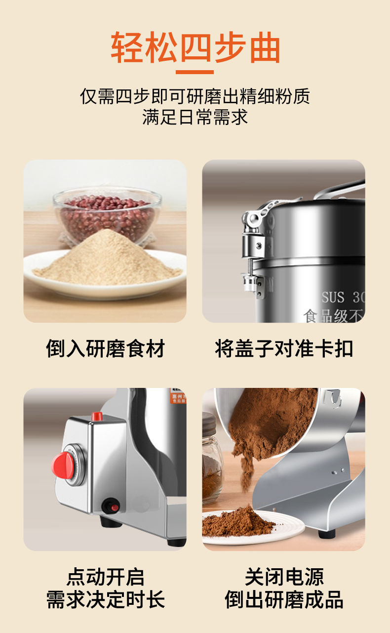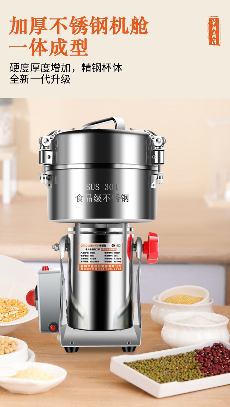 304 스테인레스 스틸 전통 한약 밀 크러셔 가정용 작은 분쇄기 곡물 연삭 기계 분쇄
