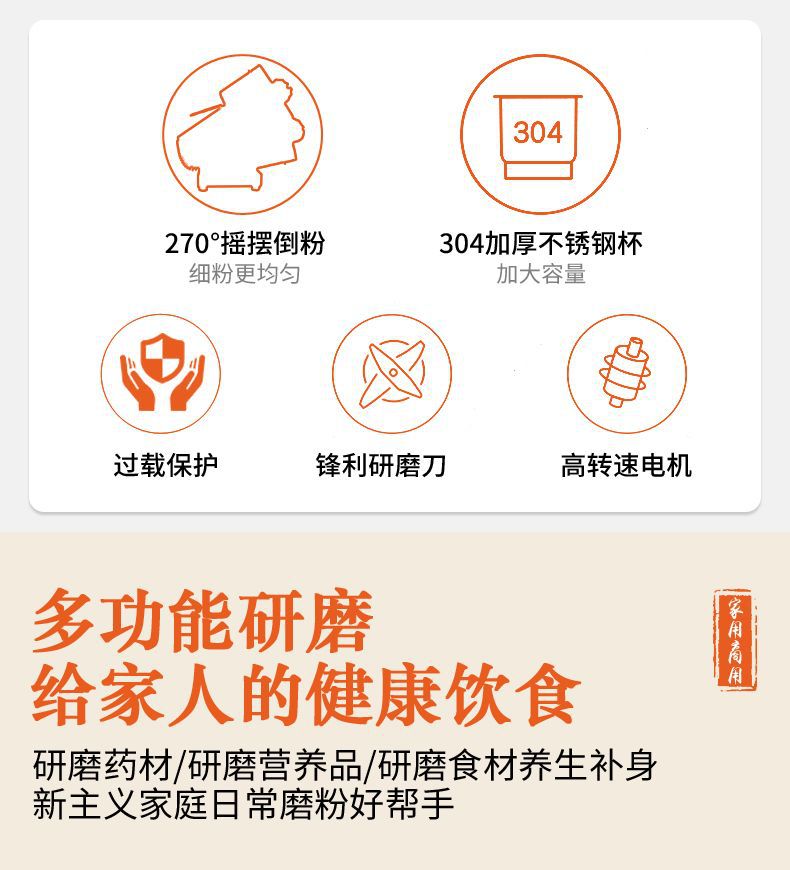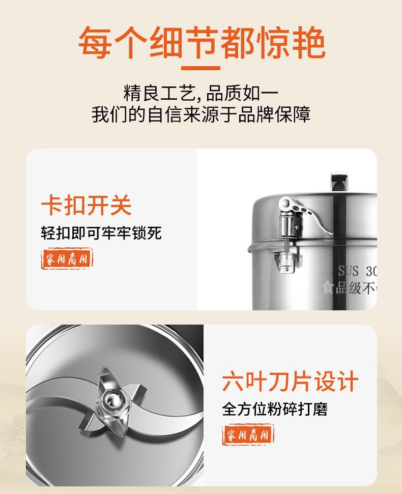 • 304 스테인리스 스틸(모터가 파손된 경우 교체만 가능, 수리 불가)_1000g(두꺼운 대형 모터 + 경화 강철 칼)